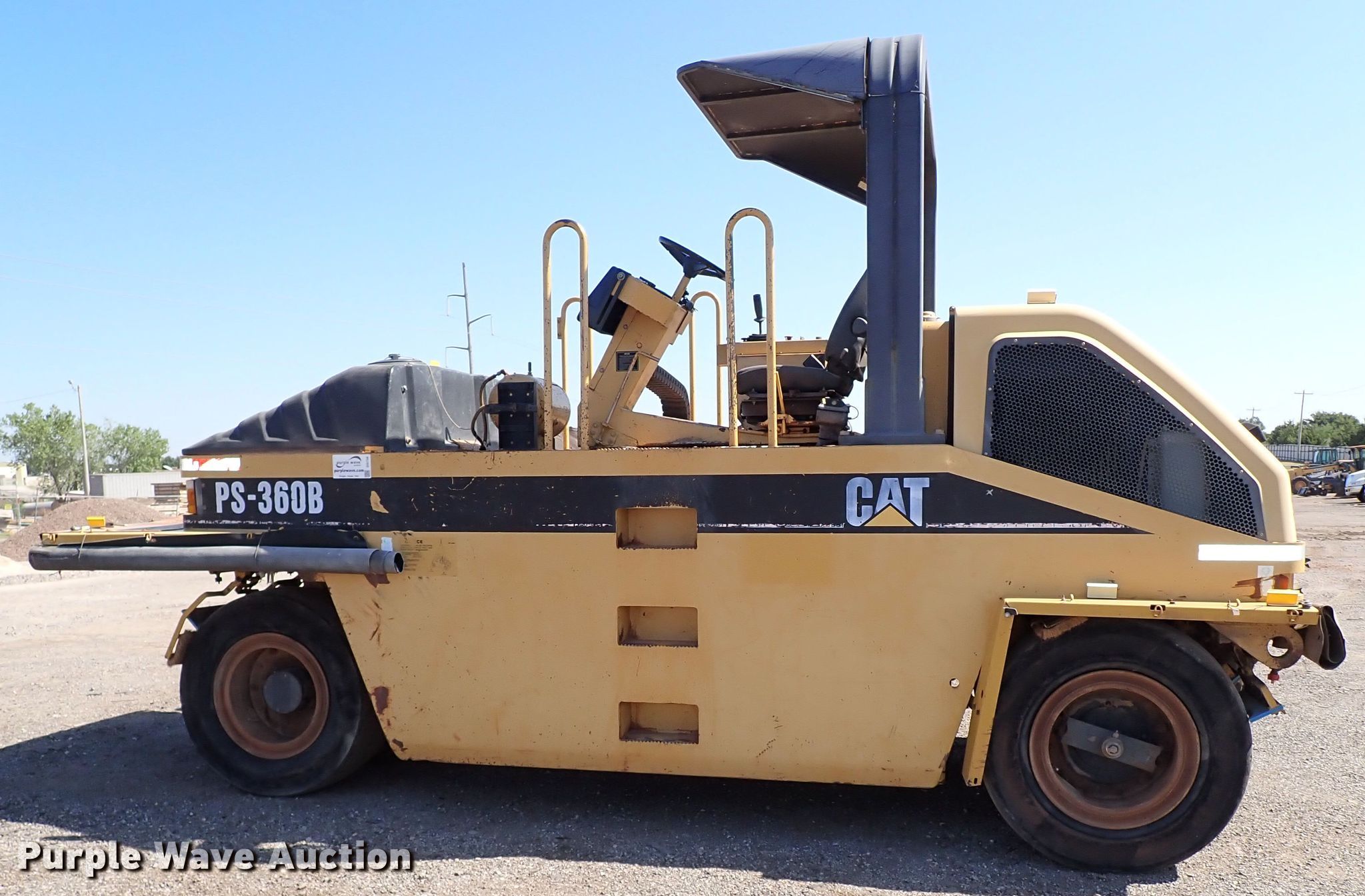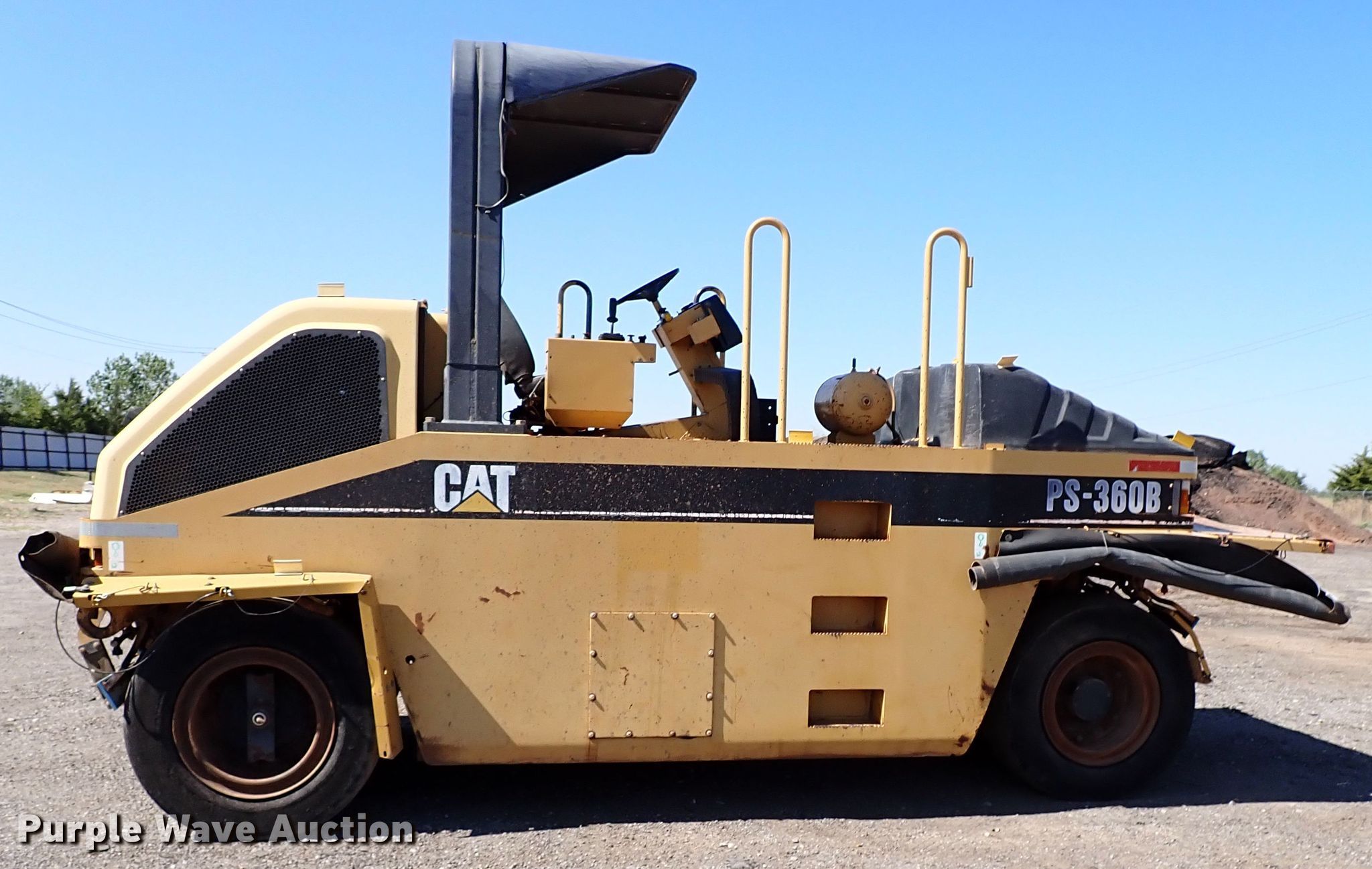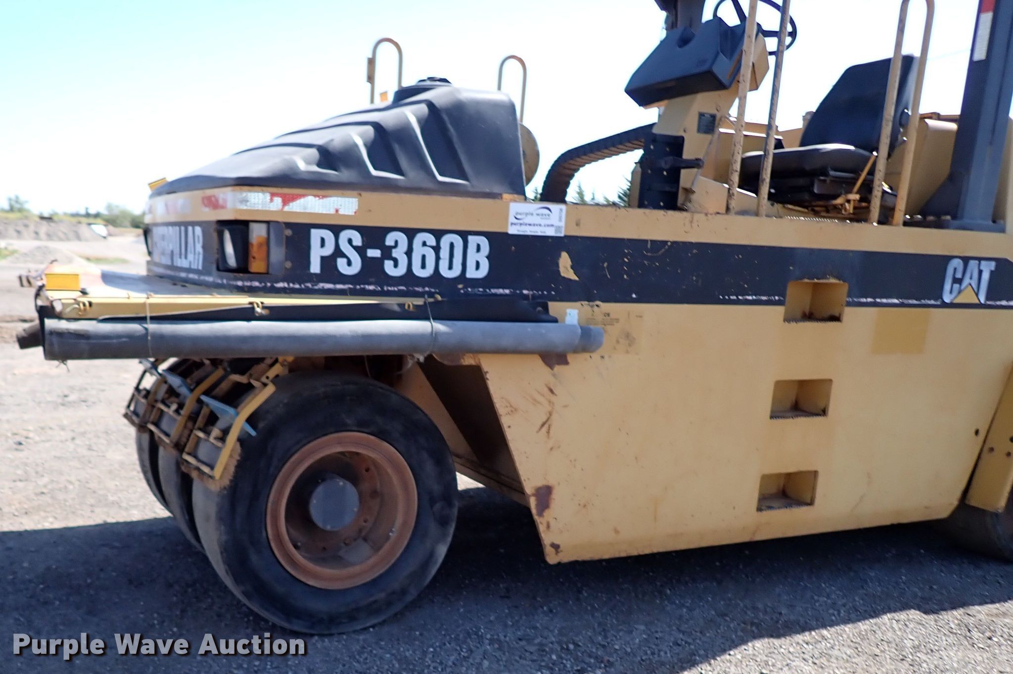 Purple Wave is selling a used Pneumatic Roller in Oklahoma. This item is a 2001 Caterpillar PS-360B pneumatic roller with the following: Hours: 709 on meter, Serial: 9LS00208