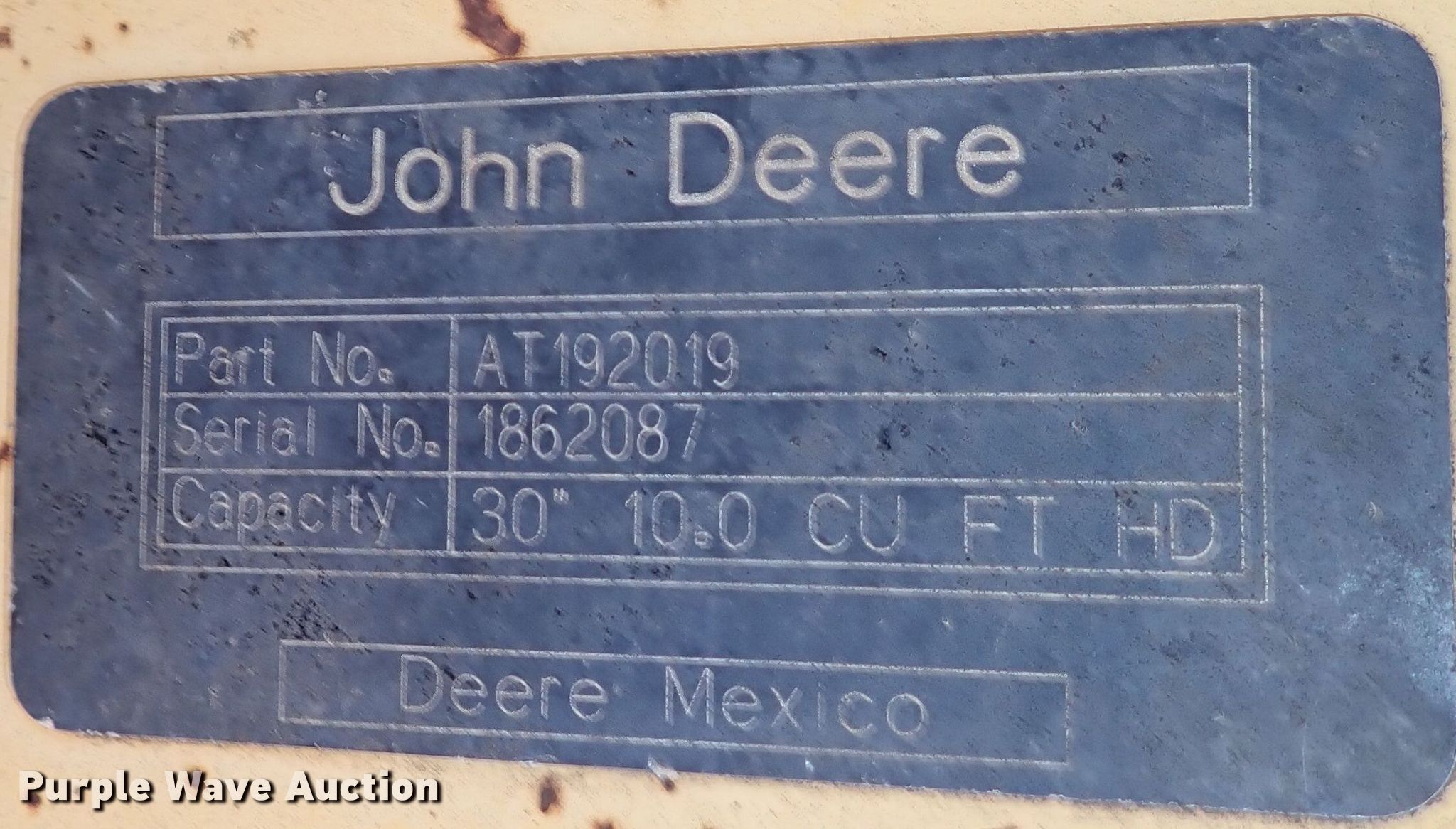 John Deere AT192019 excavator bucket has sold in Moore, Oklahoma for $143. Item DJ2244 sold on November 4th, 2021.