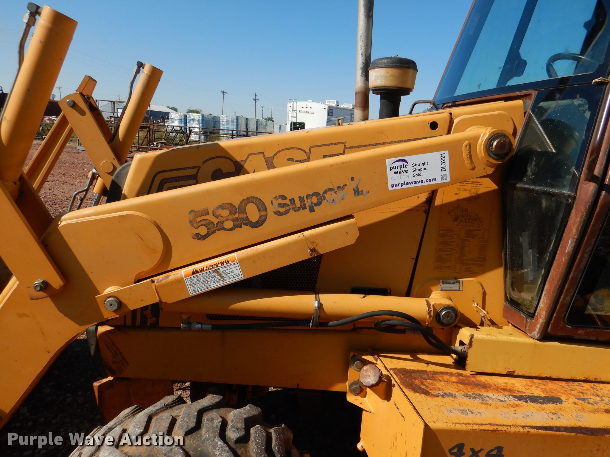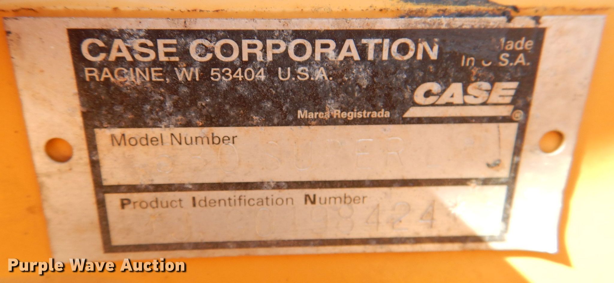 1996 Case 580 Super L backhoe. Hours: 614 on meter Hour meter exceeds mechanical limits, Serial: JJG0198424. Engine Case 4T-390, Serial: 45380493, Cylinders: 4, Fuel type: Diesel. Transmission Shuttle shift, 4F - 4R. Chassis Four wheel drive, Differential lock. Operators station Enclosed cab, Heat, Backhoe controls: Wobble stick / two stick. Operational Loader Bucket Width: 84", Cutting edge: Bolt-on, Backhoe Extendable stick, Bucket Width: 24", Cutting edge: Weld-on, Teeth: 5.. Tires Front: 12-16.5, Rear: 19.5-24. Herman L Loeb Oil. 5518 Oil Center Rd S. Great Bend, KS 67530