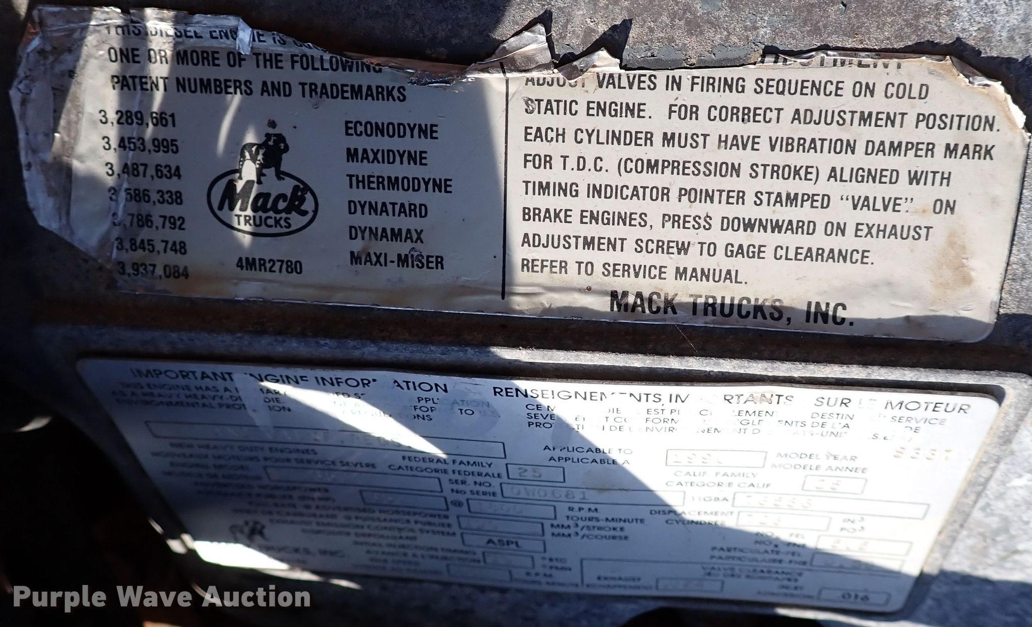This Mack E7-350 engine will sell to the highest bidder regardless of price.