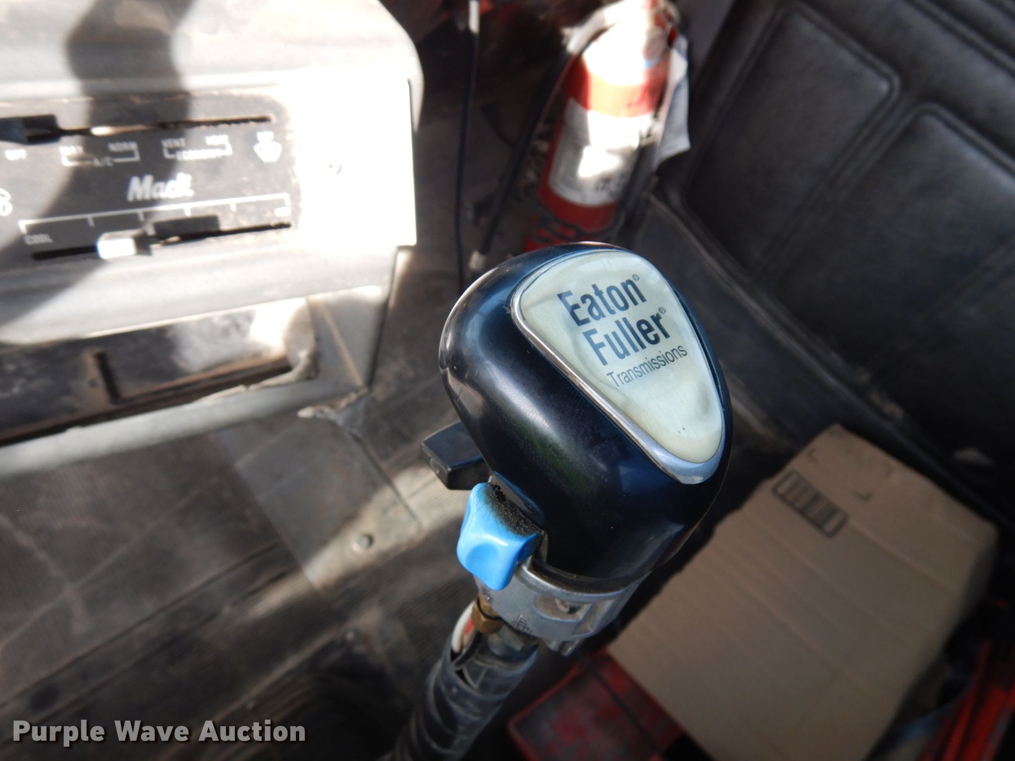 1999 Mack RD690S ready mix truck. Miles: 420,291 on odometer, Hours: 28,666 on meter, VIN: 1M2P264C7XM028053, Unit #: 499. Engine Cylinders: 6, Fuel type: Diesel. Transmission Manual. Chassis Axles: 4, Pusher axle Steerable, Suspension: Walking beam, Brakes: Air, PTO. Interior AC, Heat, Cruise control. Operational Mixer Kimble, Capacity: 11 cu.yd., Discharge: Rear, Bins: Aggregate, In-cab controls, Rear drum controls, Water tank capacity: 135 gallons, Chute Extensions: 3, Chute type: Steel.. Tires Front: 425/65R22.5, Rear: 11R22.5, Lift axle: 255/70R22.5. Notes Dash warning indicator: ABS. Minnesota title. Duininck Concrete. 21350 Hwy 23 NE. New London, MN 56273