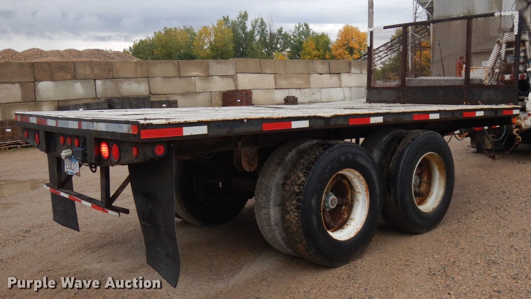1987 Ward flatbed trailer. VIN: 2L1697, Unit #: BP-103. Dimensions Overall: 24' L x 96" W, Deck: 16' 6" L x 96" W. Operational Deck type: Wood. Chassis Hitch: Pintle, Landing gear: Single, Suspension: Spring, Brakes: Air, Axles: Tandem. Tires Steel wheels, Size: 11R22.5. Minnesota title. Duininck Concrete. 21563 State Hwy 7 Hwy. Hutchinson, MN 55350