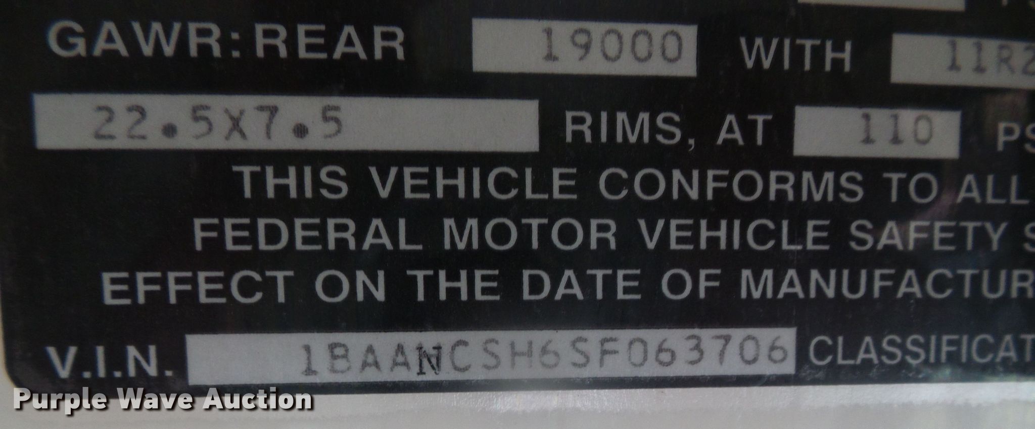 • VIN: 1BAANCSH6SF063706