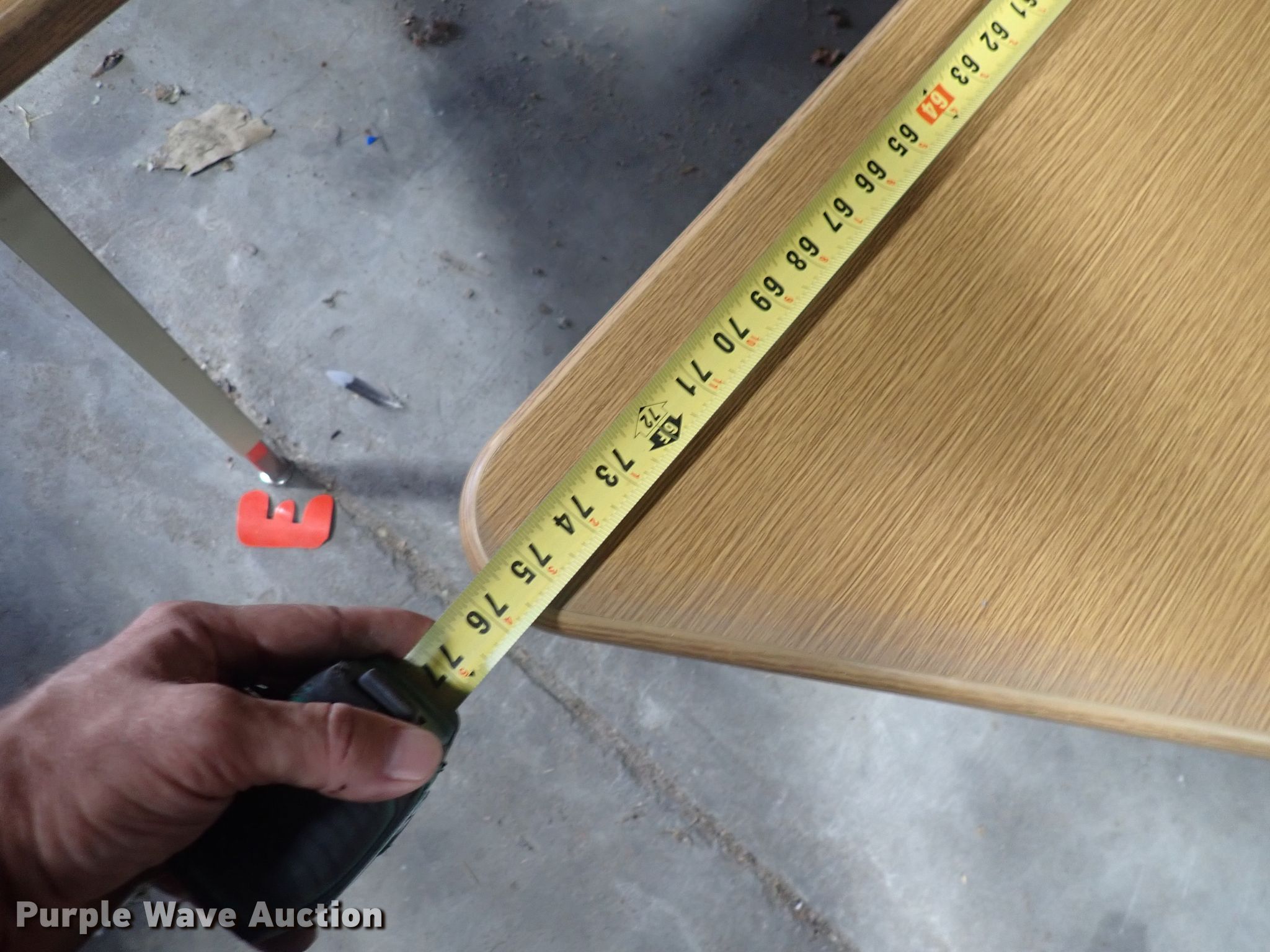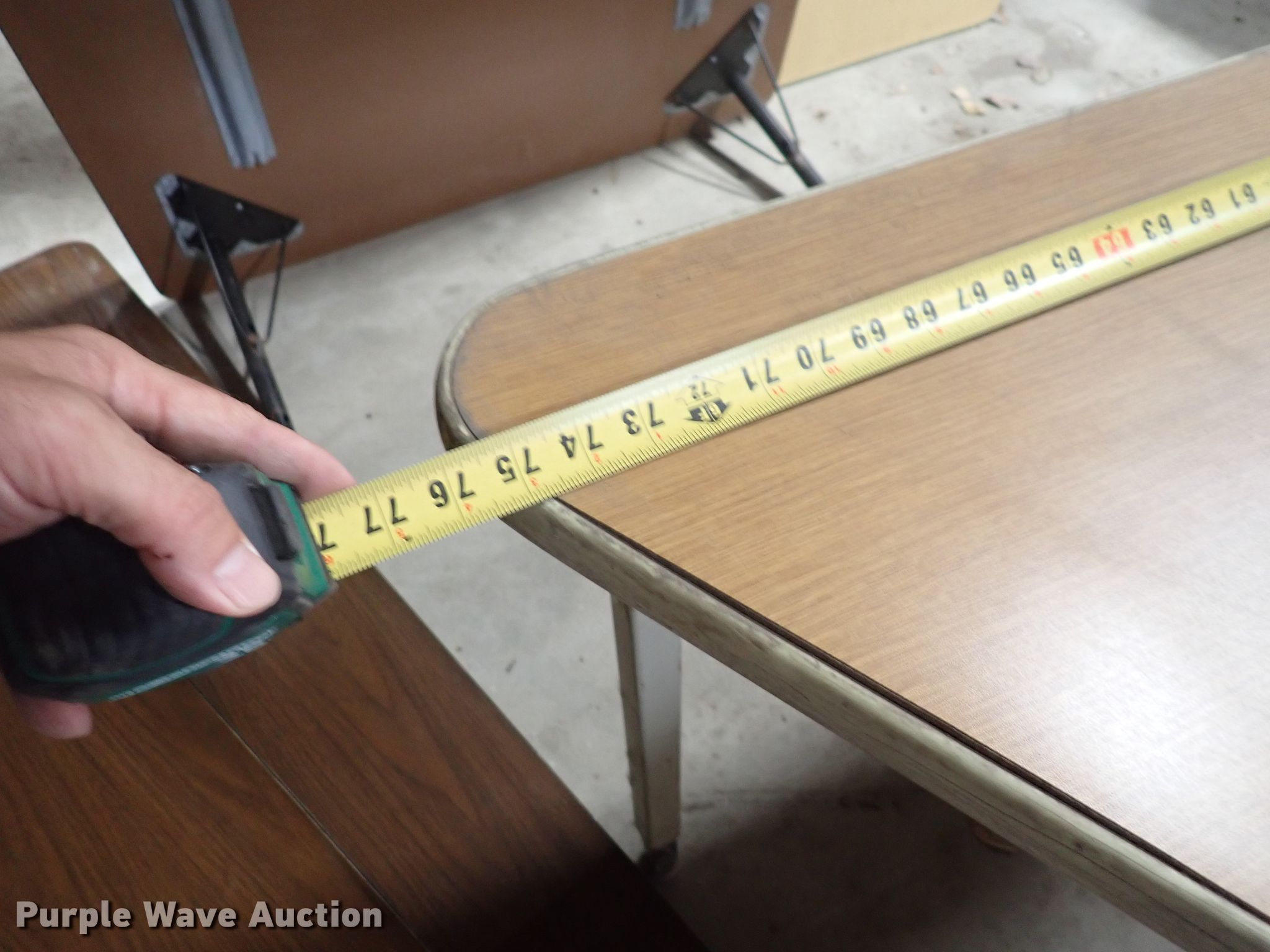 Purple Wave is selling a used Furniture in Kansas. This item is a (5) trapezoid tables with the following: (3) 77" x 36", 85" x 26", 76" x 36"