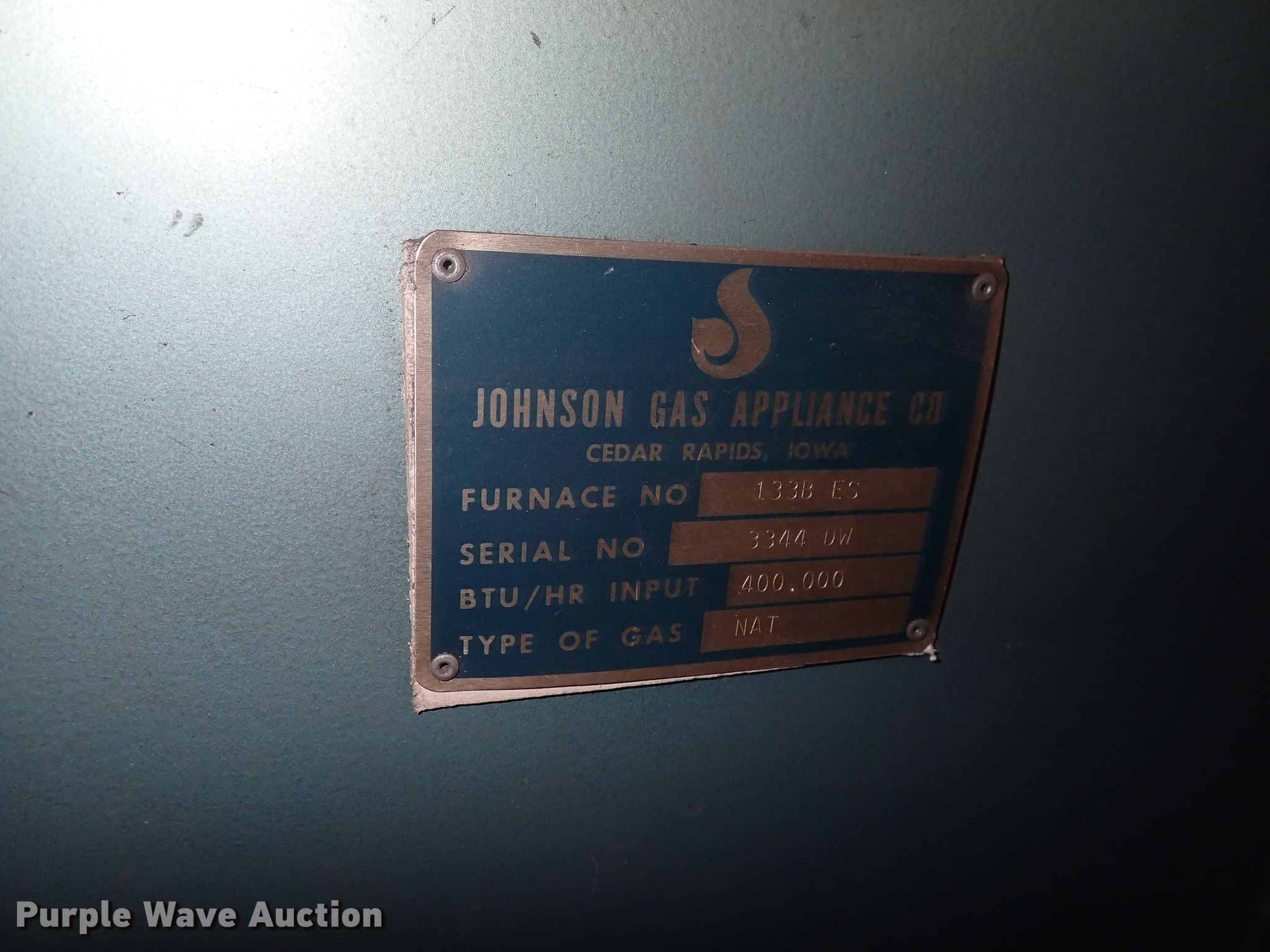 Purple Wave is selling a used Tools in Kansas. This item is a Johnson 133BES forge with the following: 400,000 BTU, Natural gas fired, Electric blower, Single phase