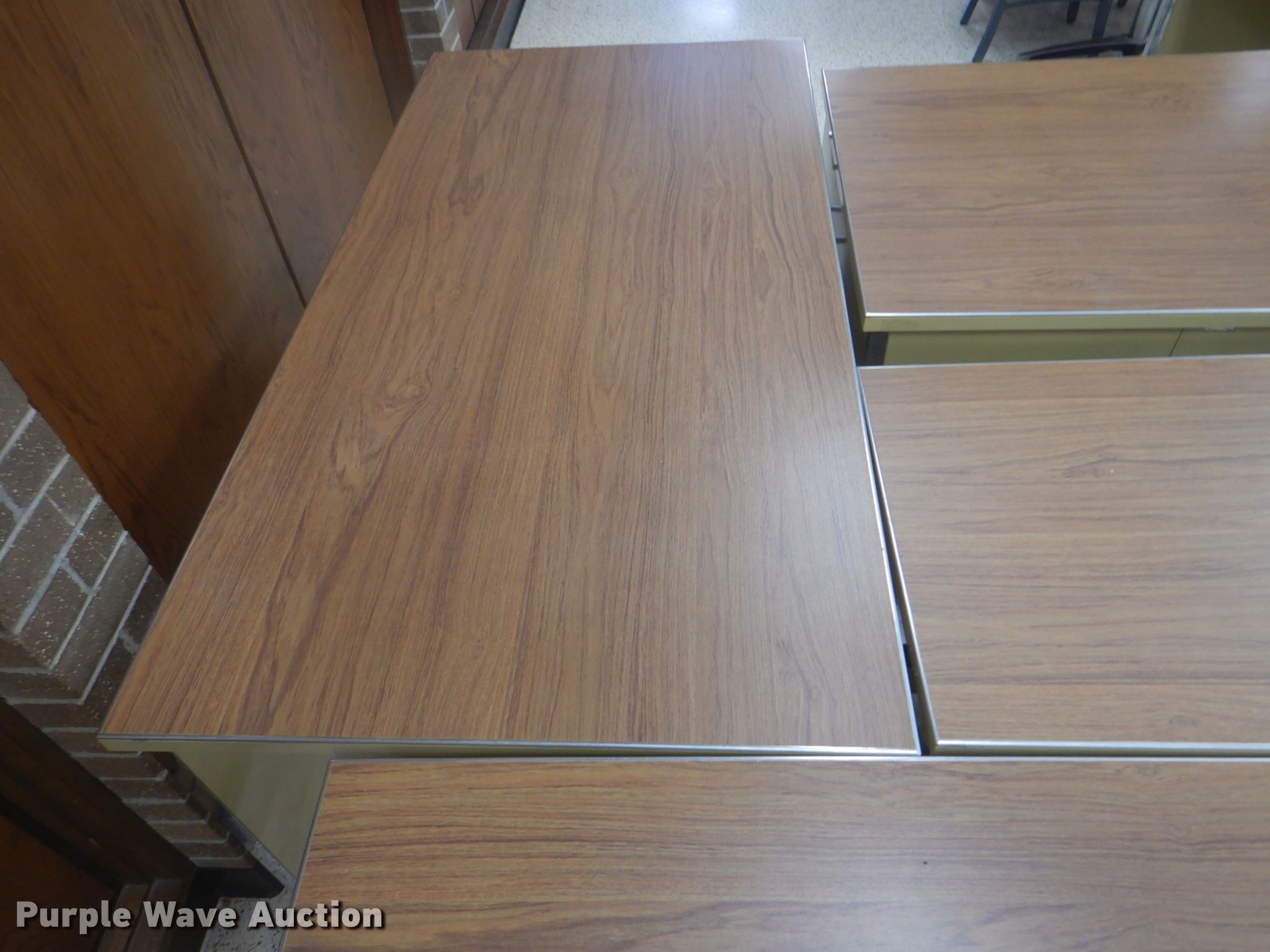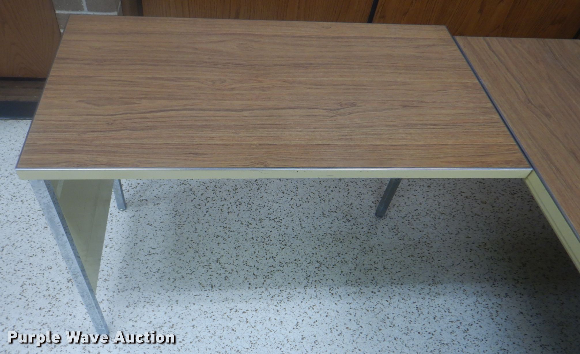 Purple Wave is selling a used Furniture in Oklahoma. This item is a Furniture with the following: (3) L-shaped desks, 60" L x 36" W, Shelf, 36" L x 18" W