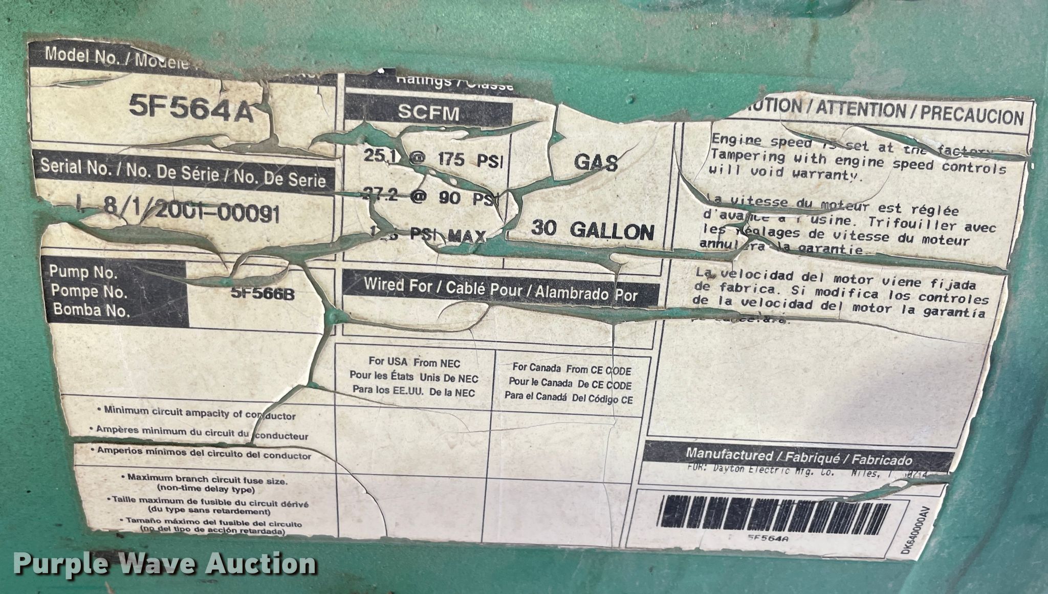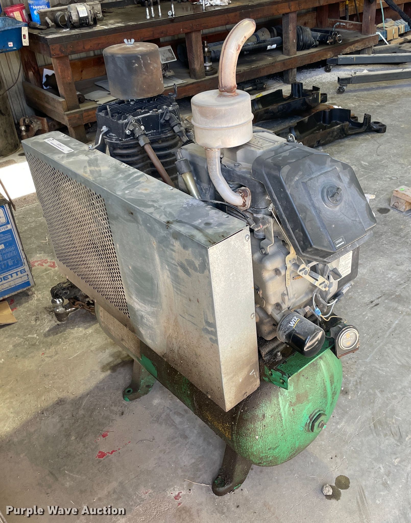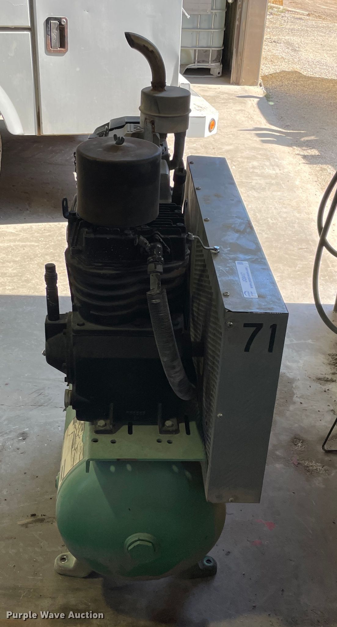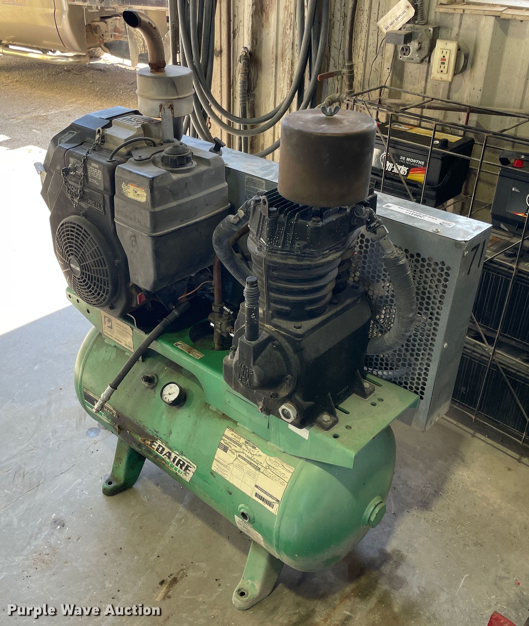 Purple Wave is selling a used Air Compressor in Kansas. This item is a Speedaire 5F564A air compressor with the following: Hours: 990 on meter, Serial: L8/1/2001-00091