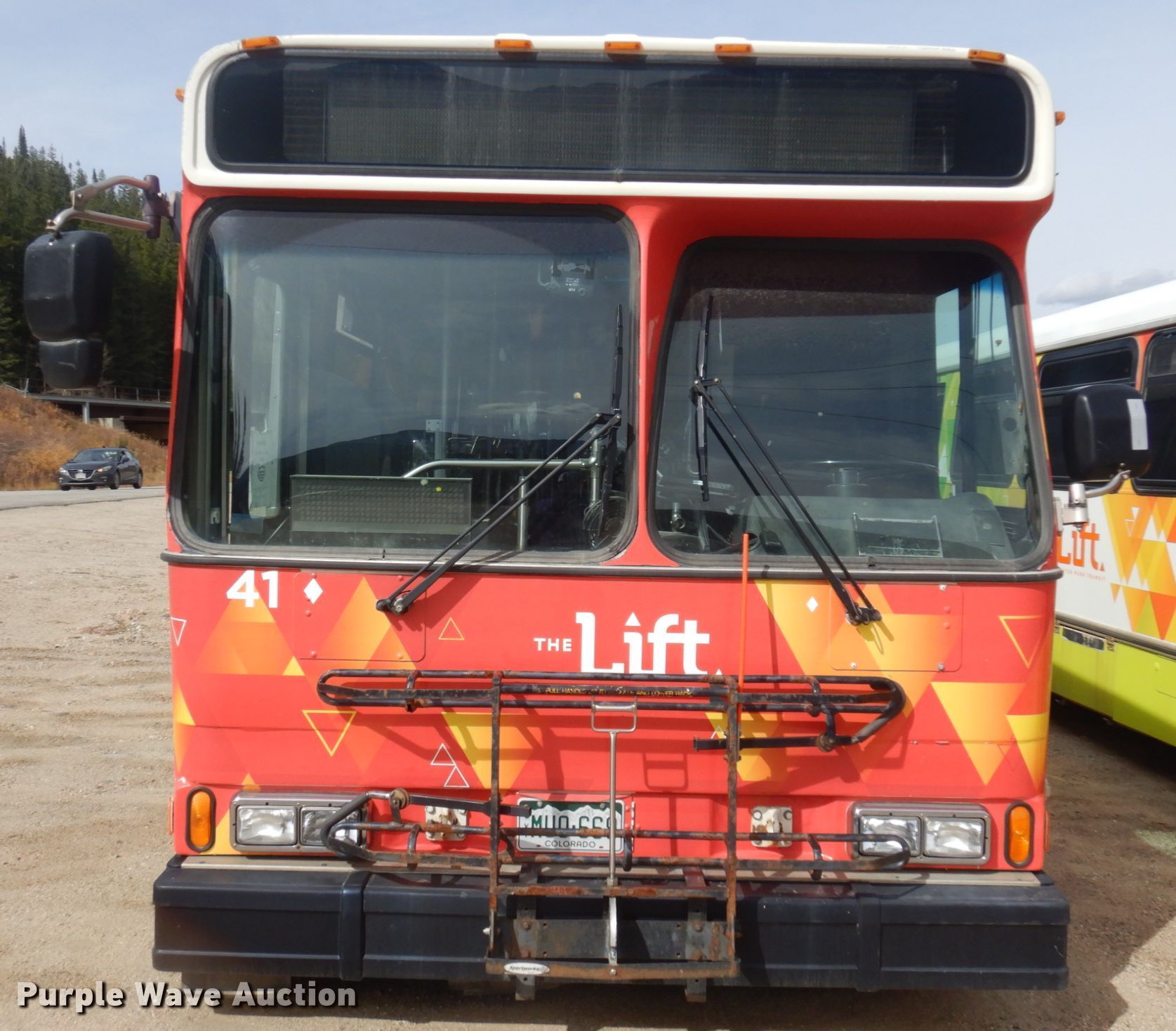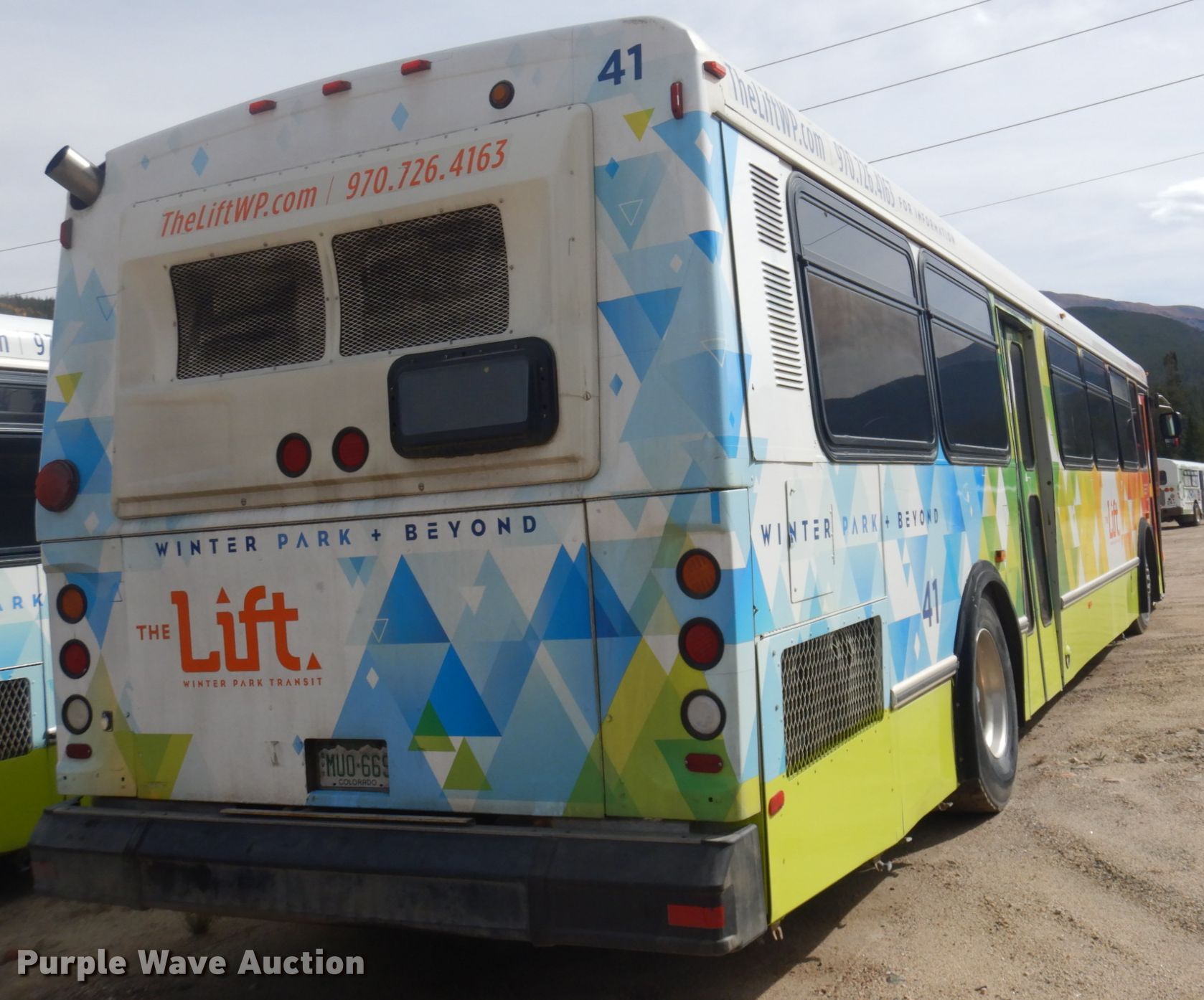 2000 Orion transit bus. Miles: 754,548 on odometer, VIN: 1VH5H3H2XY6501111, Unit #: 41. Engine Cylinders: 6, Fuel type: Diesel. Transmission Automatic. Chassis Axles: Single, Suspension: Air, Brakes: Air, GVWR: 40,600 lbs. Interior Heat, Seats Adult seats: 36, Wheelchair lift. Tires Size: 12R22.5. Notes Biker racks, hangover displays, two-way radios, and driver camera not included, Non-operational unit. Colorado title. Town of Winter Park Public Works Dept.. 1471 Winter Park Dr. Winter Park, CO 80482