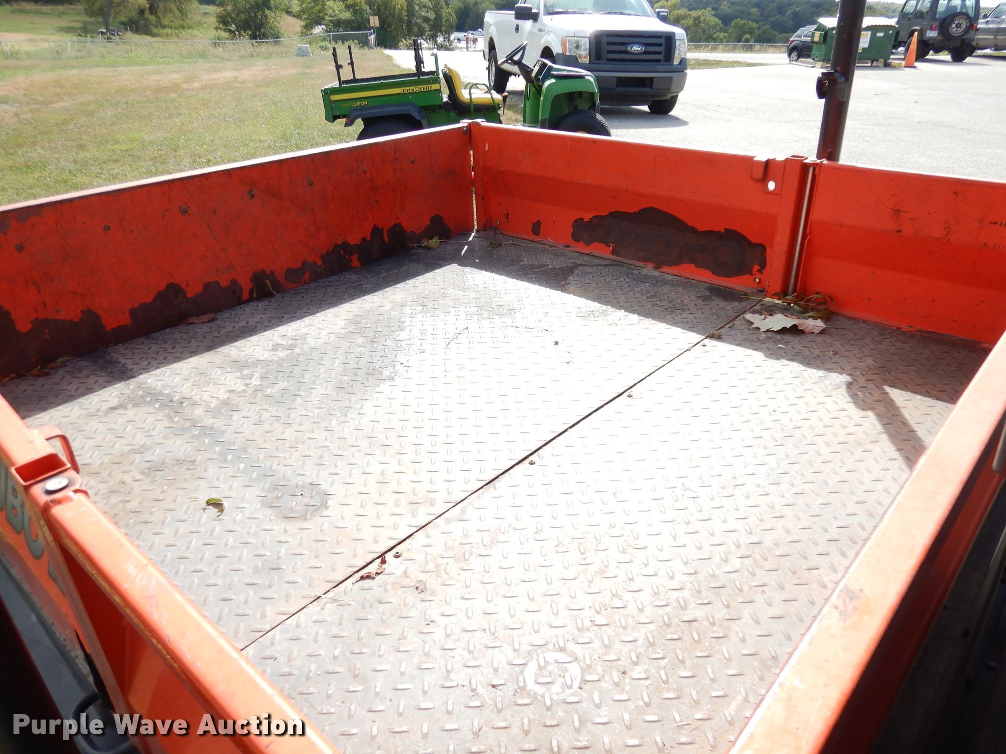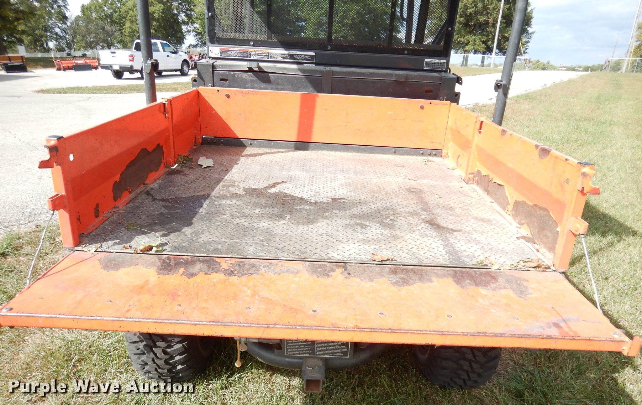 2010 Kubota RTV11400CPX utility vehicle. Hours: 1,930 on meter, VIN: A5KD1HDAJAG016592, Serial: 16592. Engine Kubota D1105, Cylinders: 3, Fuel type: Diesel, Electric start. Chassis Four wheel drive. Operators station Canopy, Passengers: 2. Operational Winch, Grill guard, Receiver hitch, Dump bed 56" L x 54" W, Dump bed type: Electric/ Hydraulic. Tires Size: 25x10.00-12. Kansas non-highway title. Olathe, KS 66061