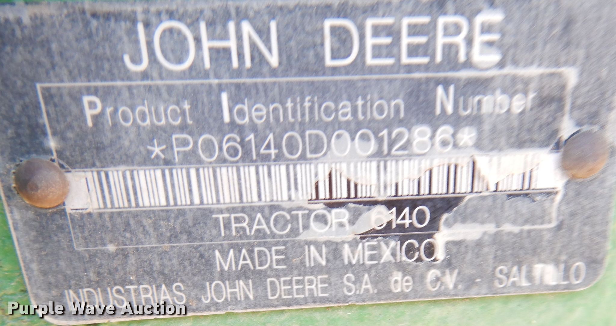 Purple Wave is selling a used Tractor in Kansas. This item is a 2009 John Deere 6140D MFWD tractor with the following: Hours: 2,133 on meter, Serial: P06140D001286, Unit #: AIR28