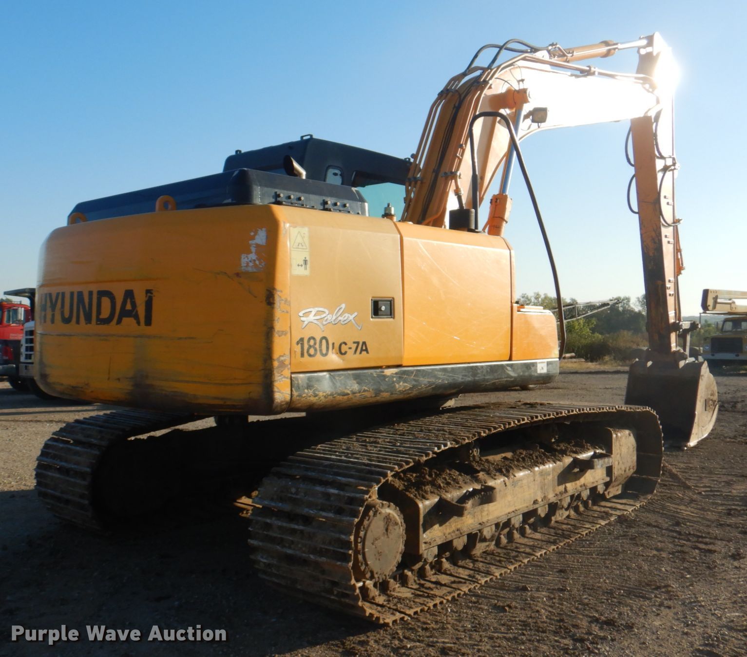 Purple Wave is selling a used Hydraulic Excavator in Missouri. This item is a 2008 Hyundai Robex 180LC-7A excavator with the following: Hours: 4,536 on meter, Hours may vary, unit still in use, Serial: N50510041