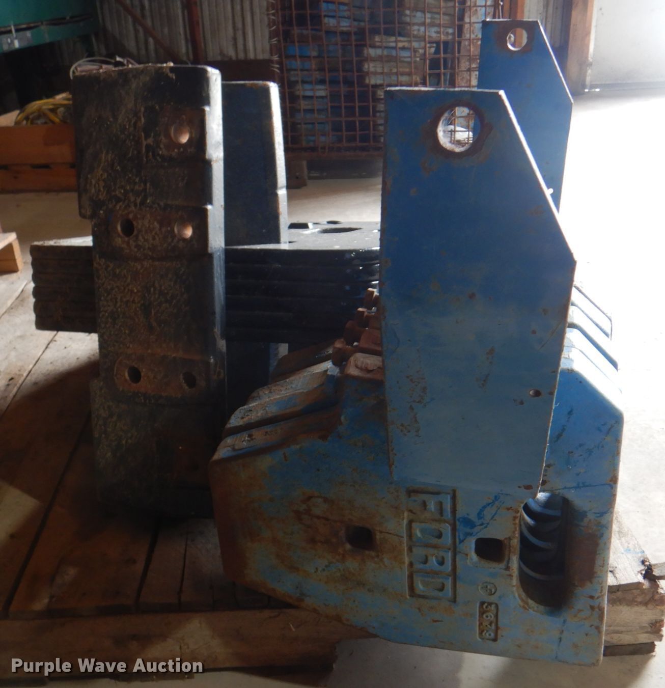 Purple Wave is selling a used Ag Tractor Loader or Attach. in Missouri. This item is a Approximately 50 weights with the following: Suitcase weights, Bumper weights