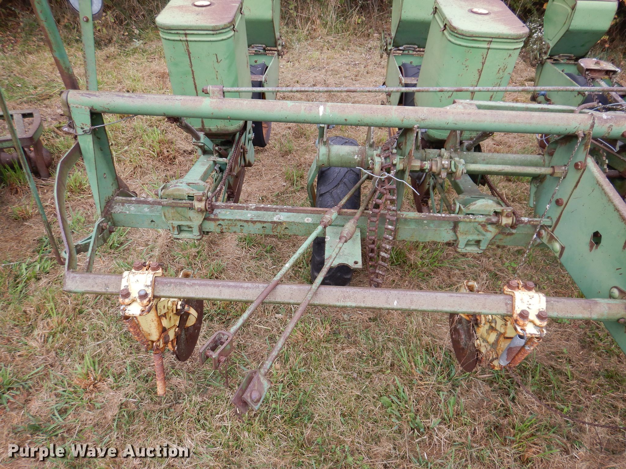 Purple Wave is selling a used Planter in Iowa. This item is a John Deere 1240 planter with the following: Row units: 4, Row spacing: 38", Serial: 054722B