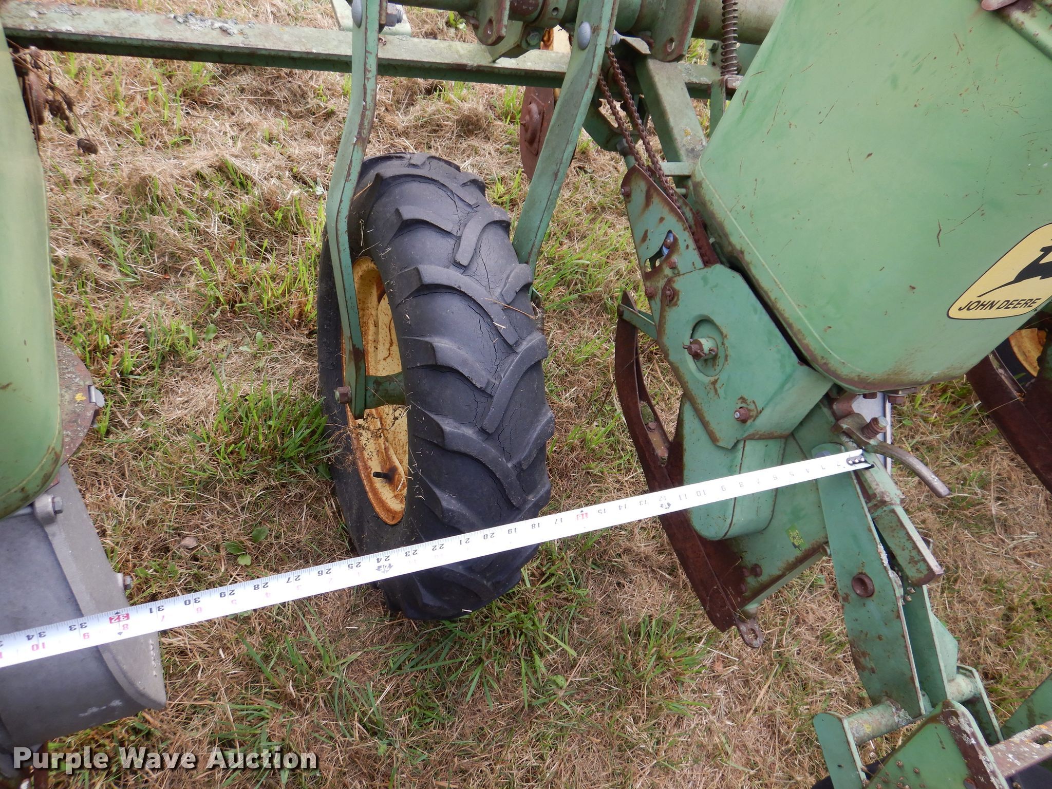 John Deere 1240 planter. Row units: 4, Row spacing: 38", Serial: 054722B. Operational Frame Marker arm, Seed delivery Individual seed hoppers, Row units Meter drive: Ground, Down pressure: Spring, Disk openers: Double, Closing system: Single Type: Rubber.. Tires Transport tire size: 6.7-15 Quantity: 2. Arborcare by Kluver LLC - Open inspection Nov. 9. 13580 NW 102nd Ave. Granger, IA 50109