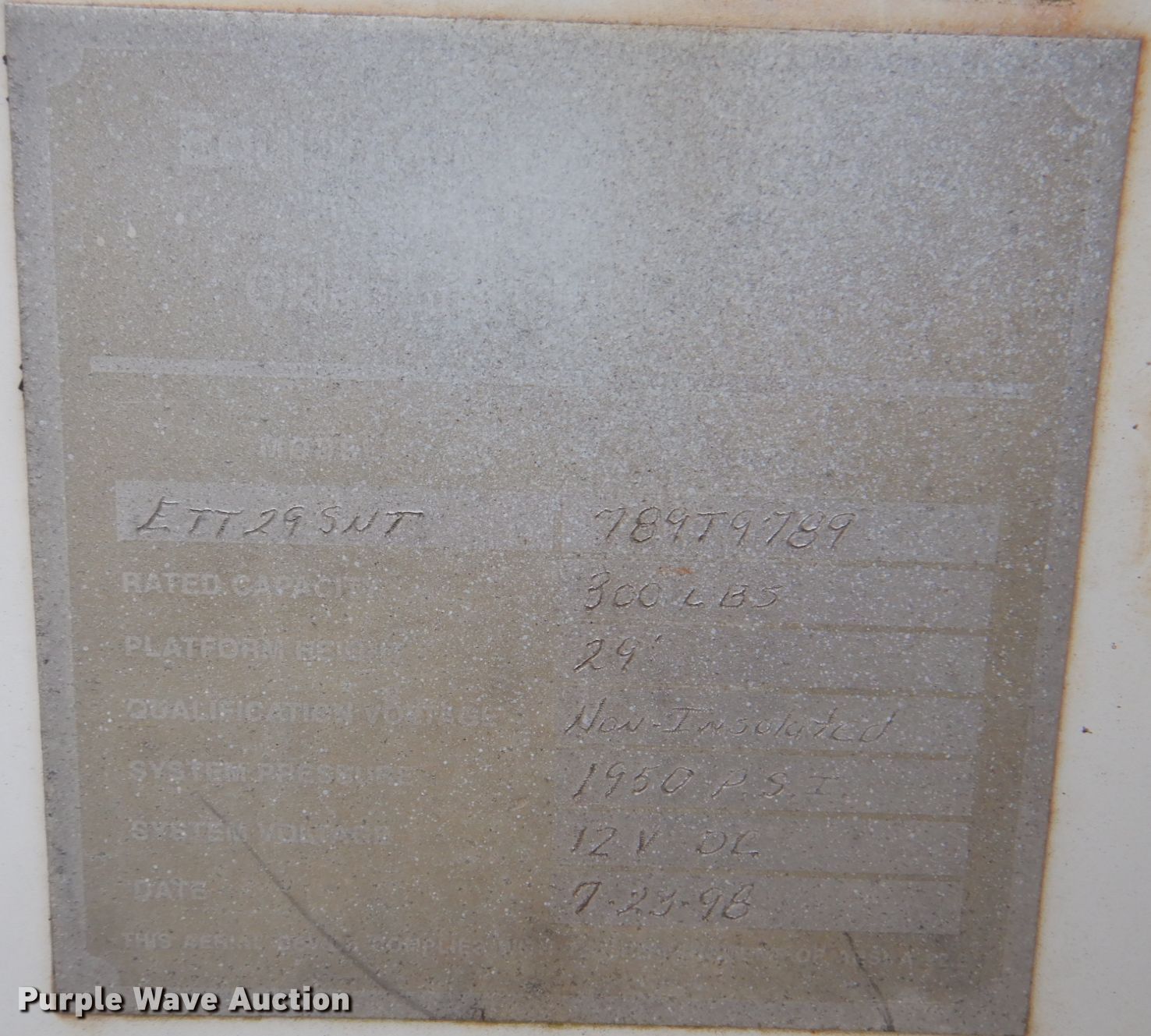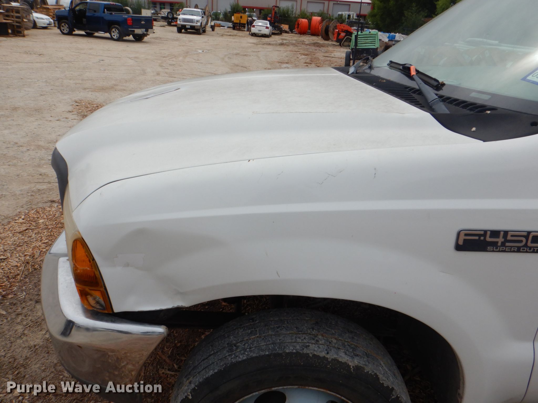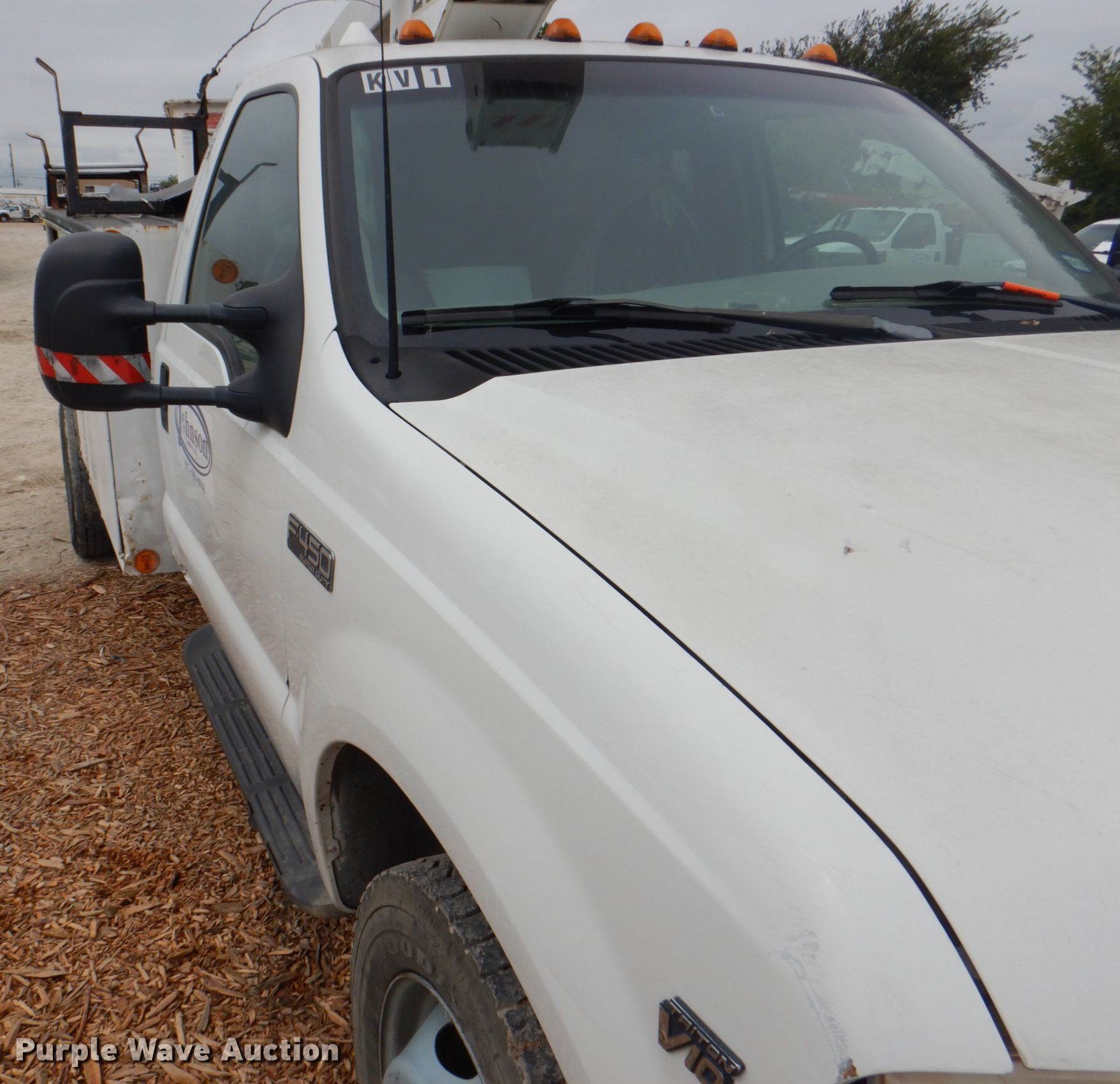 1999 Ford F450 Super Duty bucket truck. Miles: 235,465 on odometer, VIN: 1FDXF46S2XED18532. Engine Ford Triton V10, Displacement: 6.8L V10 SOHC 20V, Cylinders: 10, Fuel type: Gas. Transmission Automatic. Chassis Axles: Single, Suspension: Spring, GVWR: 15,000 lbs, Wheelbase: 166". Interior AC, Heat. Operational Bed Pacific, 11' 6" L x 7' 5" W, Boom 1998 ETI ETI29SNT, Maximum lift capacity: 300 lbs, Maximum lift height: 29', Boom type: Articulating, Telescopic, Man basket, Boom controls Ground, Platform/ basket, Generator Onan Commercial 4500, Hours: 2,488 on meter, Non-operational.. Tires Size: 225/70R19.5. Notes Windshield chipped or cracked. Texas title. Title distribution may be delayed up to 14 days from verification of funds. 4545 S Interstate 35 W. Alvarado, TX 76009