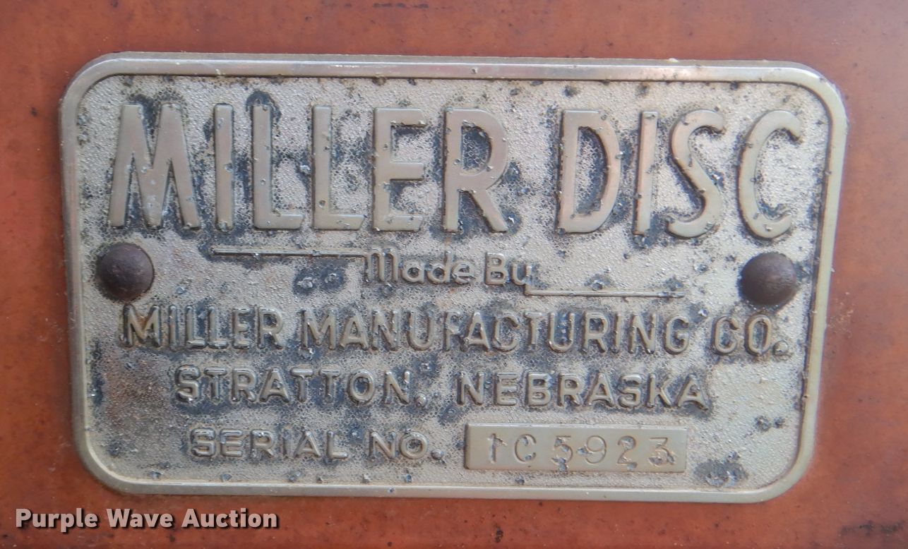 Purple Wave is selling a used Disk in Texas. This item is a Miller off-set disk with the following: Serial: 105923