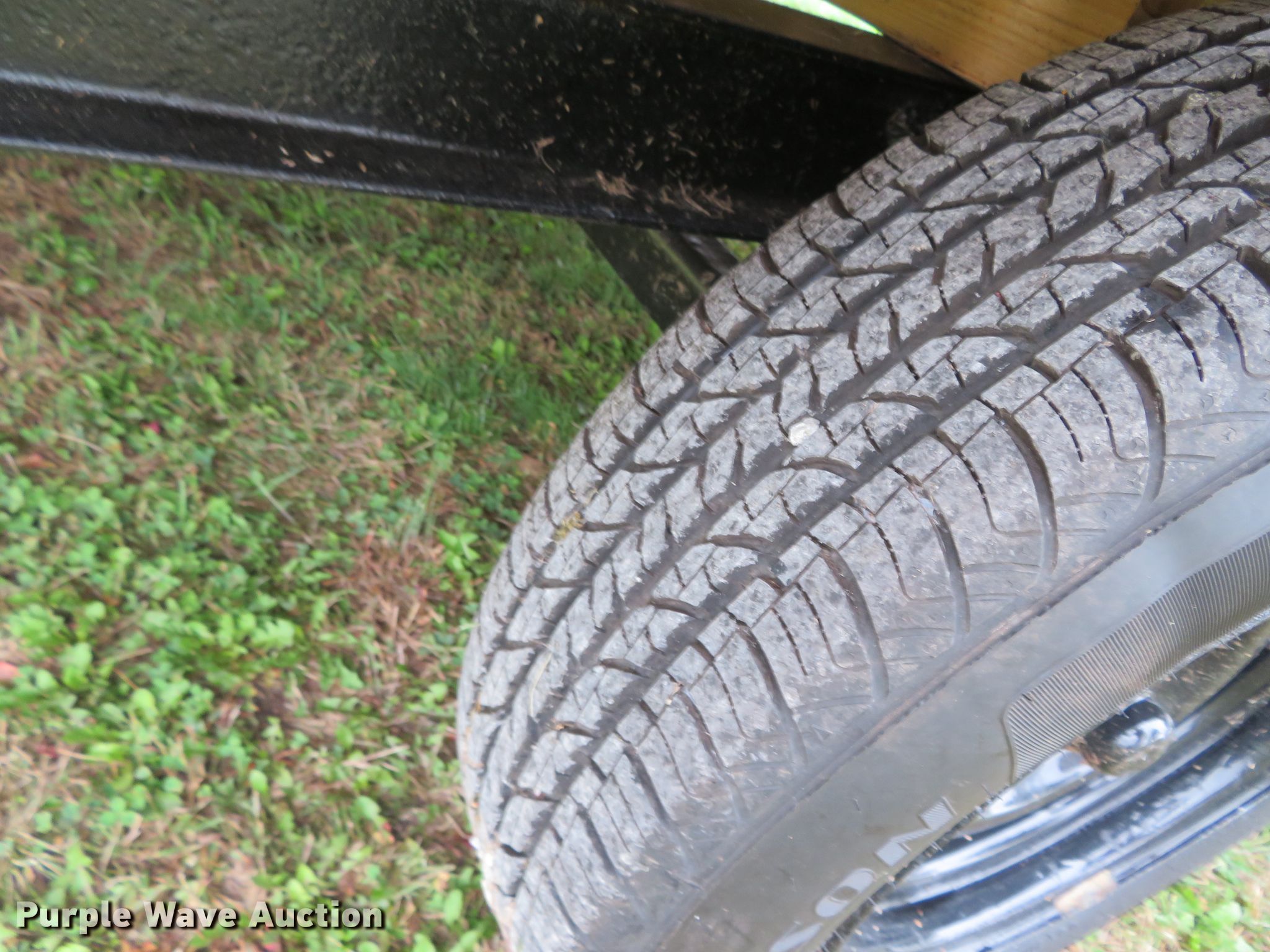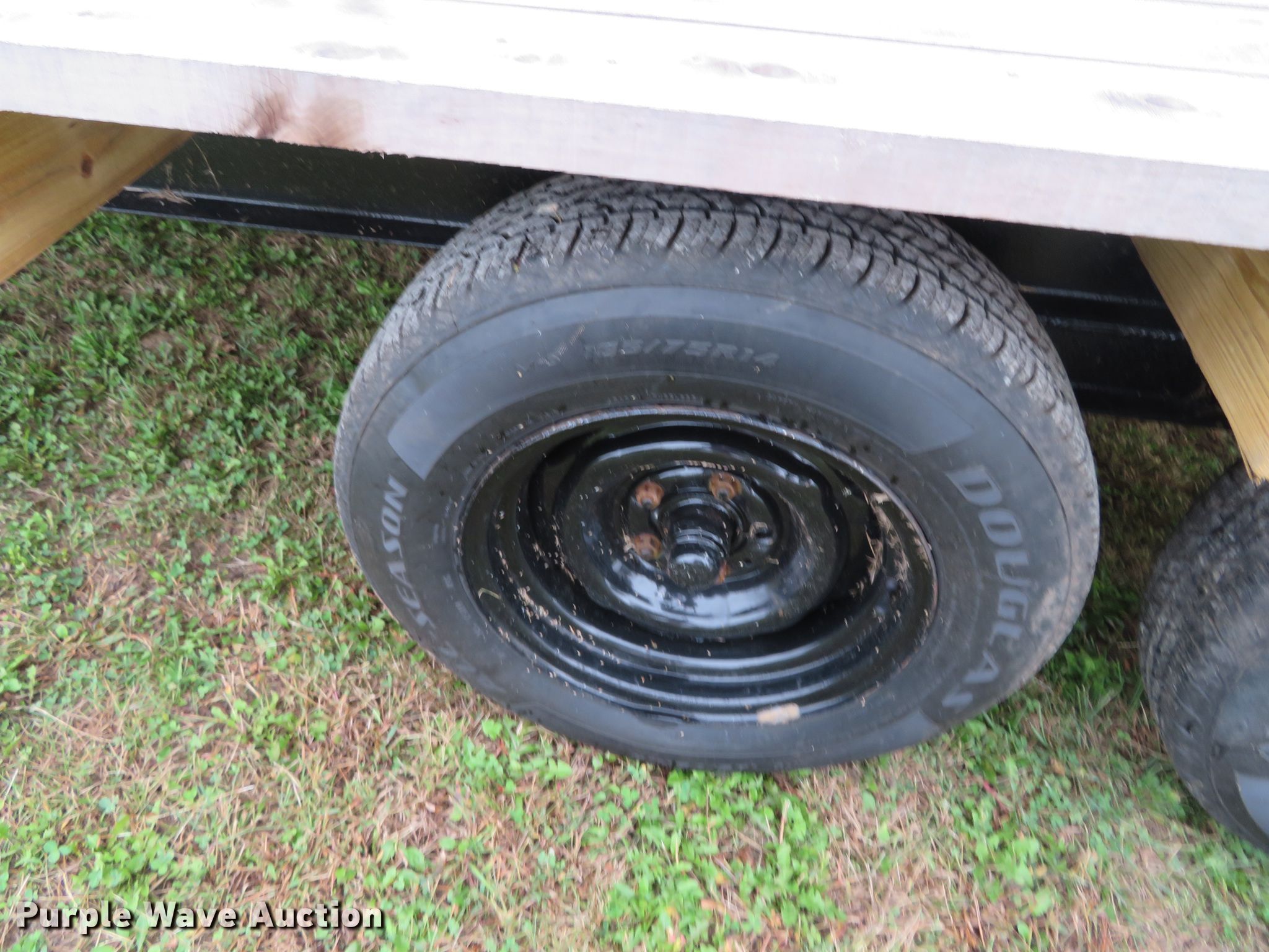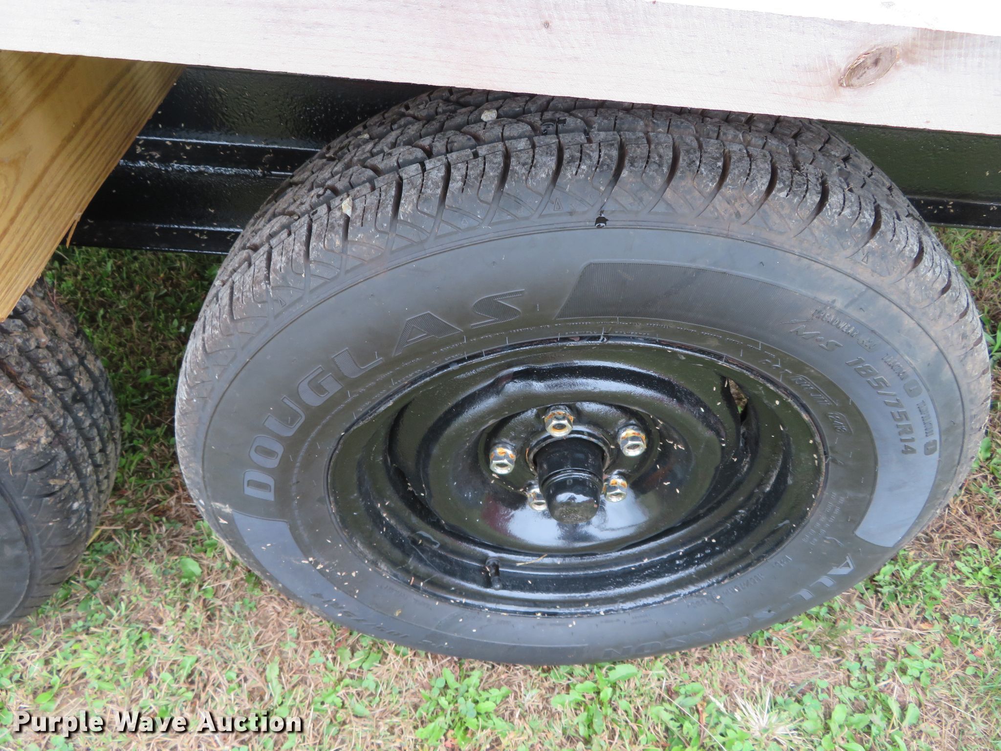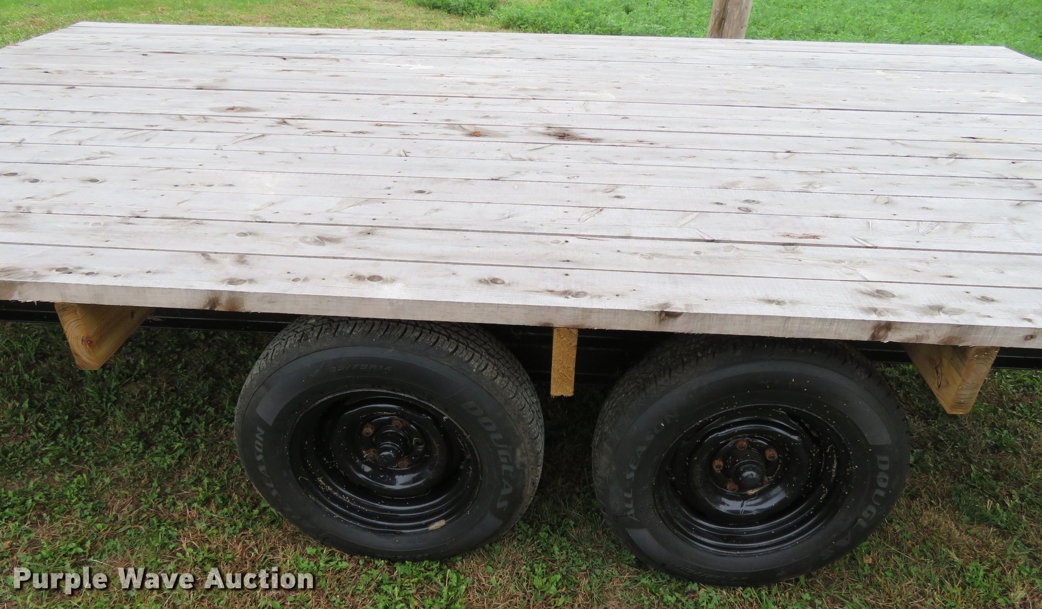 Shop built hay bale wagon. Dimensions. Overall: 16' 5" L x 96" W, Deck: 13' 5" L x 96" W. Operational Deck type: Wood. Chassis Landing gear: Single, Axles: Tandem. Tires Steel wheels, Size: 185/75R14. Dan Collins. 13320 Aulsbury Chapel Rd. Bonne Terre, MO 63628