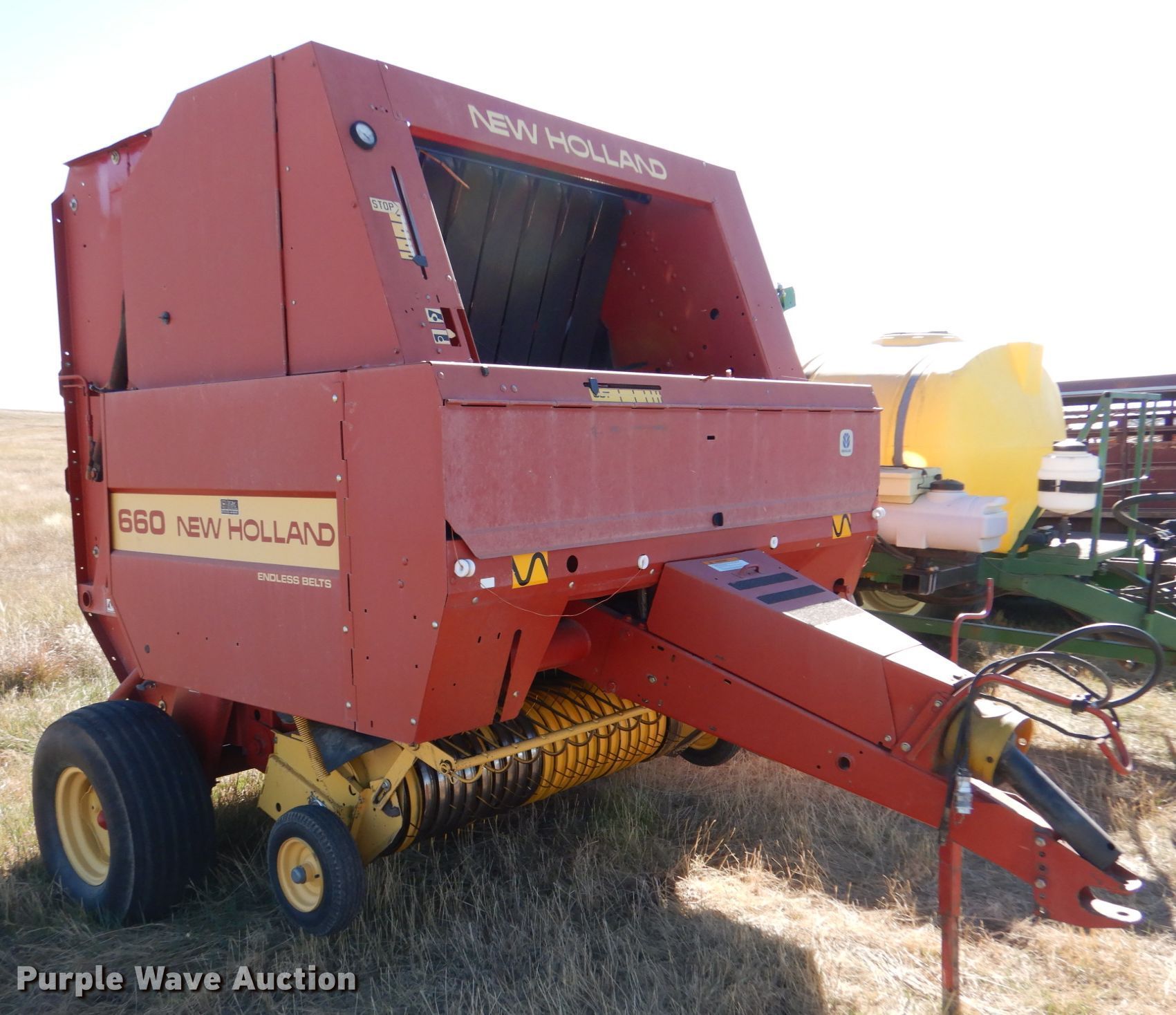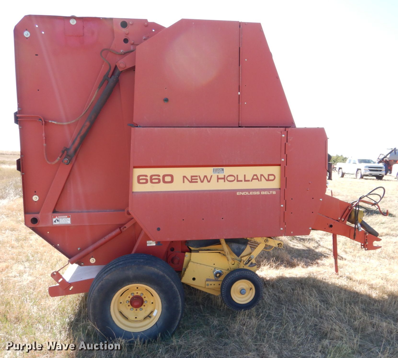 Purple Wave is selling a used Round Baler in Kansas. This item is a New Holland 660 round baler with the following: Serial: 906228