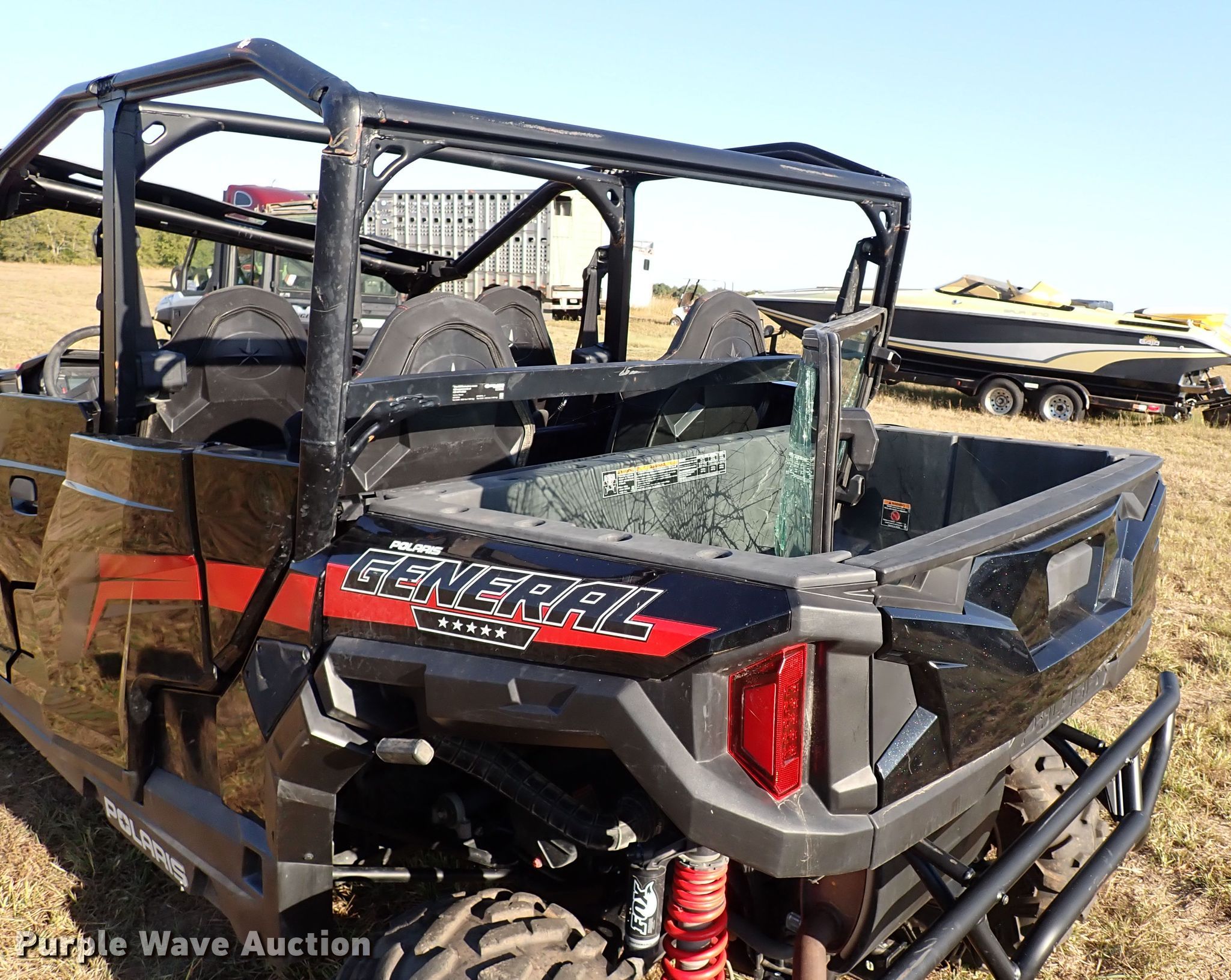 Purple Wave is selling a used Utility Vehicle in Oklahoma. This item is a 2018 Polaris General 1000 utility vehicle with the following: Miles: 4,307 on odometer, Hours: 408 on meter, VIN: 3NSRHE999JH215879, Claim #: 1-807577