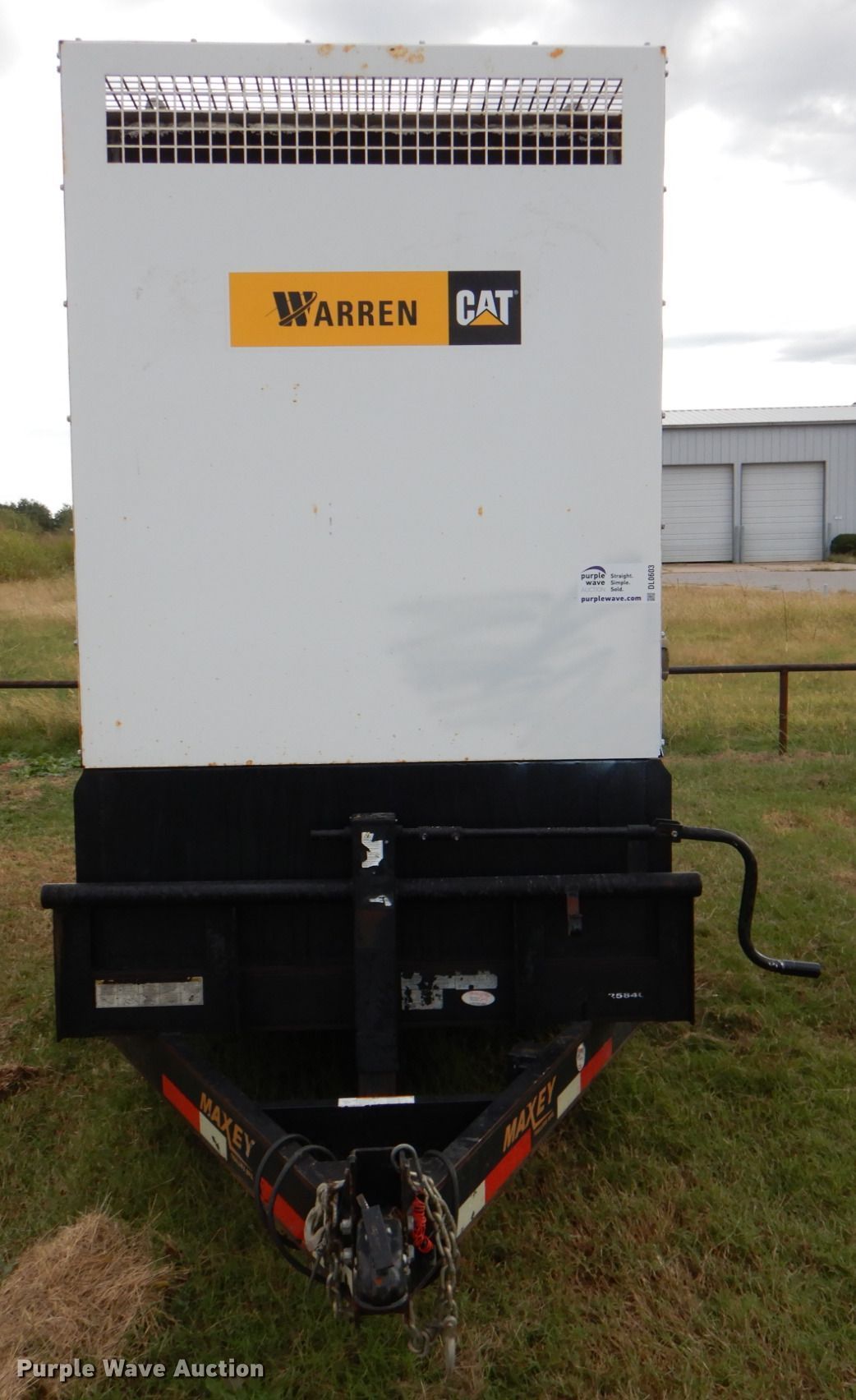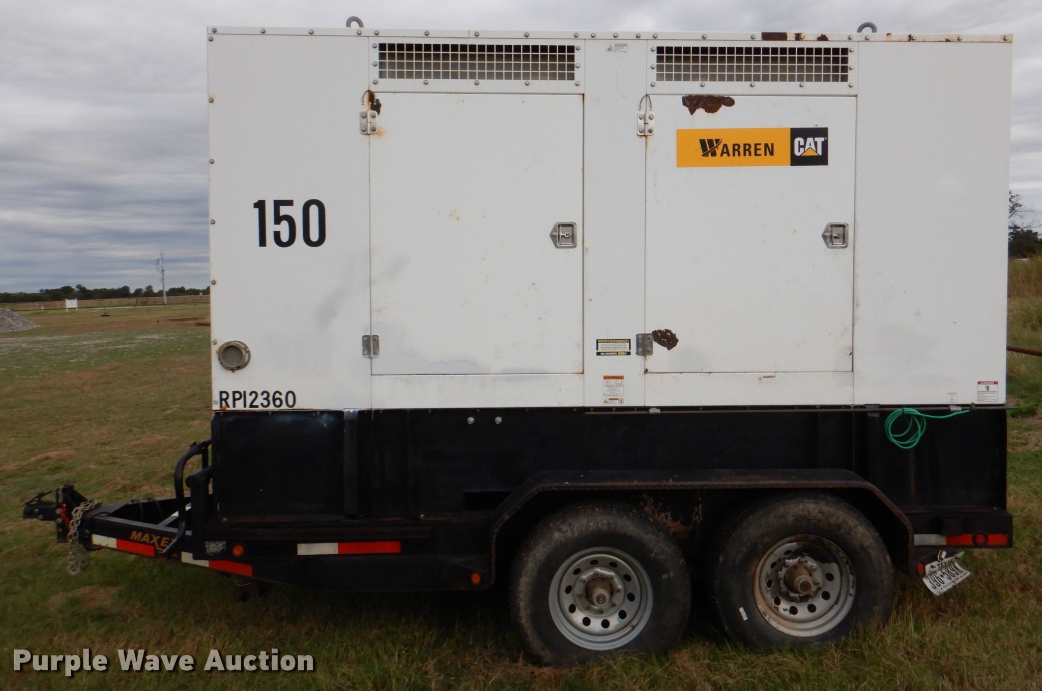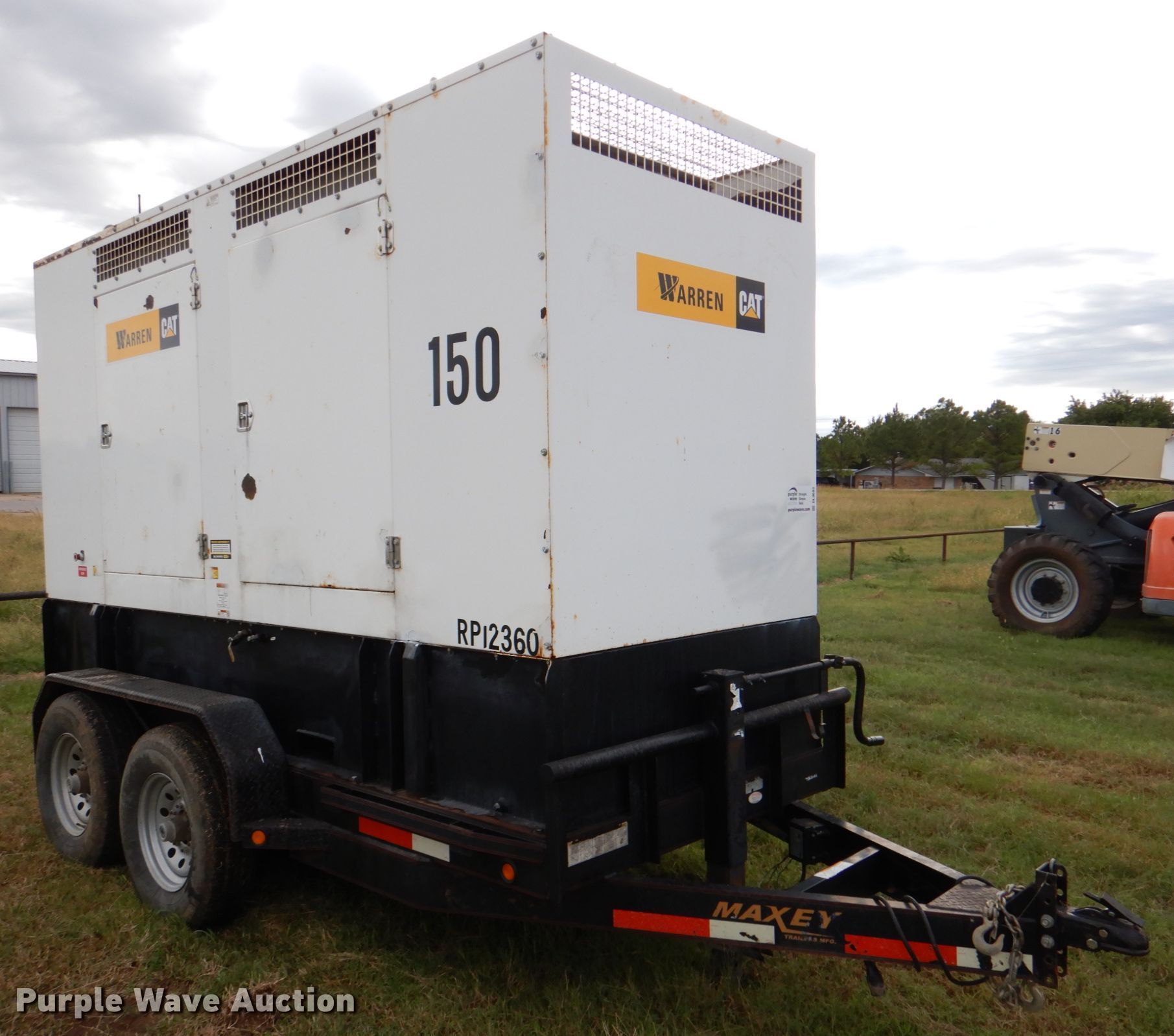 2013 Caterpillar NPS-150-T4I generator. Hours: 9,780 on meter, Serial: C12-09-06352. Engine Perkins 1206E-E70TTA, Displacement: 7.01L, Cylinders: 6, Fuel type: Diesel. Operational Generator Magnaplus 431PSL6206, kVA: 188, kW: 150, Phase: Three, Electric start, Fuel tank, Trailer mounted. Trailer VIN: 5R8CH1220DM025840, Maxey, 16' L x 84" W, Ball hitch size: 2 5/16", Suspension: Spring, Brakes: Electric, Axles: Tandem, Tire size: ST235/80R16. Transfer of ownership documentation will be a bill of sale. BNB Industries. Wynnewood, OK 73098