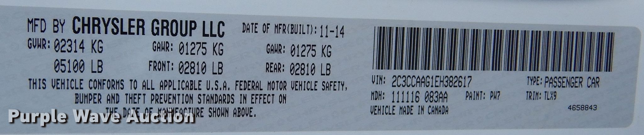 - VIN: 2C3CCAAG1EH382617