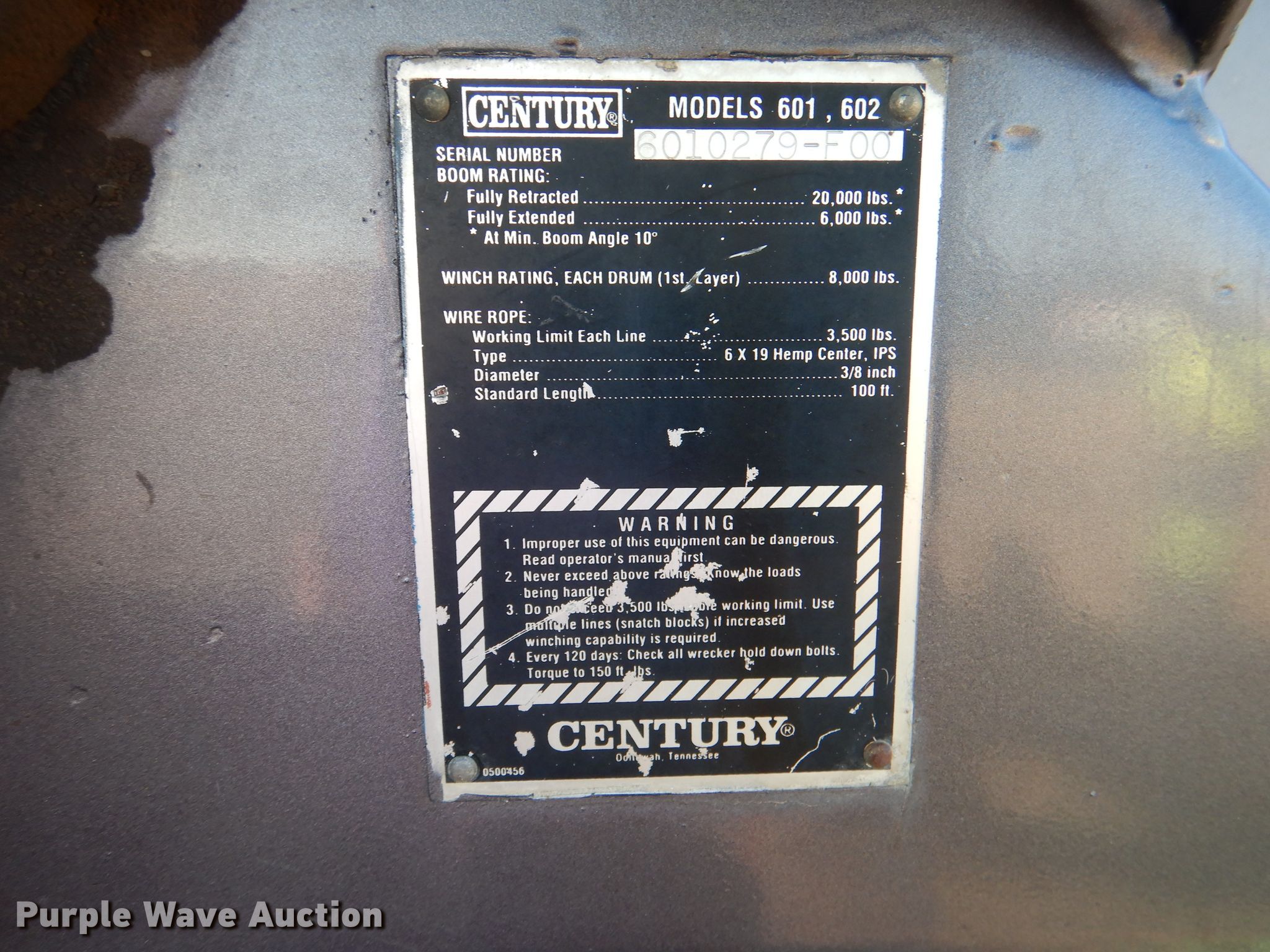 2000 Ford F450 Super Duty XL tow truck. Miles: 197,198 on odometer, VIN: 1FDXF46F8YEE05825, Unit #: 01. Engine Displacement: 7.3L, Cylinders: 8, Fuel type: Diesel. Transmission Automatic. Chassis Axles: Single, Suspension: Spring, Brakes: Hydraulic, PTO, GVWR: 15,000 lbs, Wheelbase: 165". Interior AC, Heat, Cruise control. Operational Wrecker bed Century 601, 10' L x 92" W, Wrecker boom: Hydraulic extendable, Winch Capacity: 8,000 lbs, Underlift Capacity: 6,000 lbs. Tires Size: 225/70R19.5. Notes Dolly mounts on bed not included , Labels will removed before auction, Contents on bed not included. Kansas title. Title has a lien that will be released following the close of the auction. Title distribution may be delayed up to 30 days from verification of funds. Renegade Towing & Recovery. 1882 190th Rd. Belleville, KS 66935