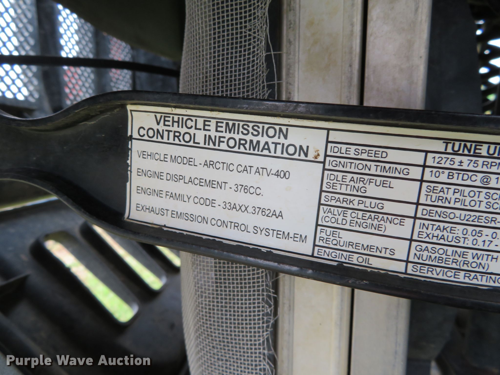 Purple Wave is selling a used ATV in Missouri. This item is a 2003 Artic Cat 400 ATV with the following: Miles: 4,409 on odometer, VIN: 4UF03ATVX3T245131