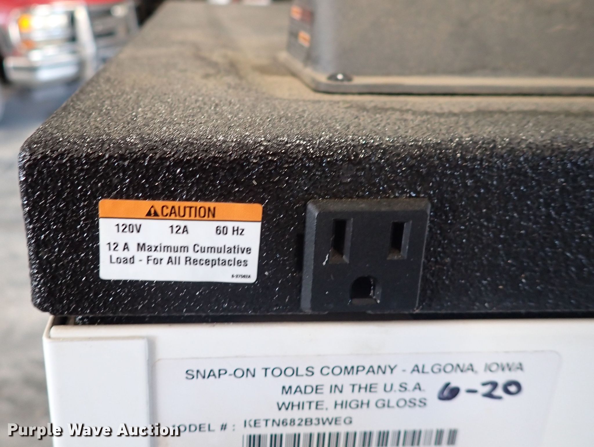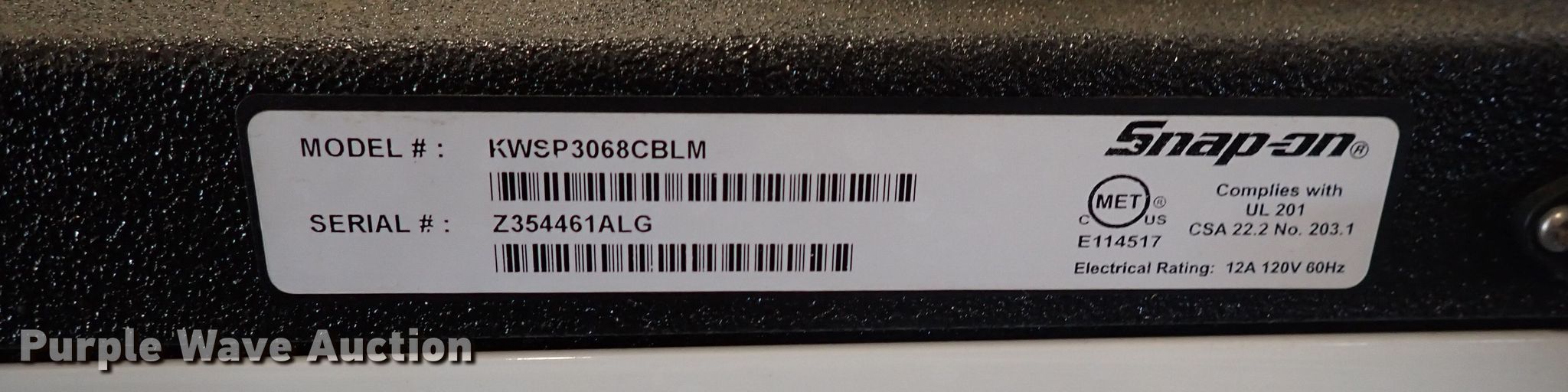 Purple Wave is selling a used Tools in Kansas. This item is a Snap On tool box with the following: 72" x 30" x 50", Volts: 120, Serial: Z354461ALG