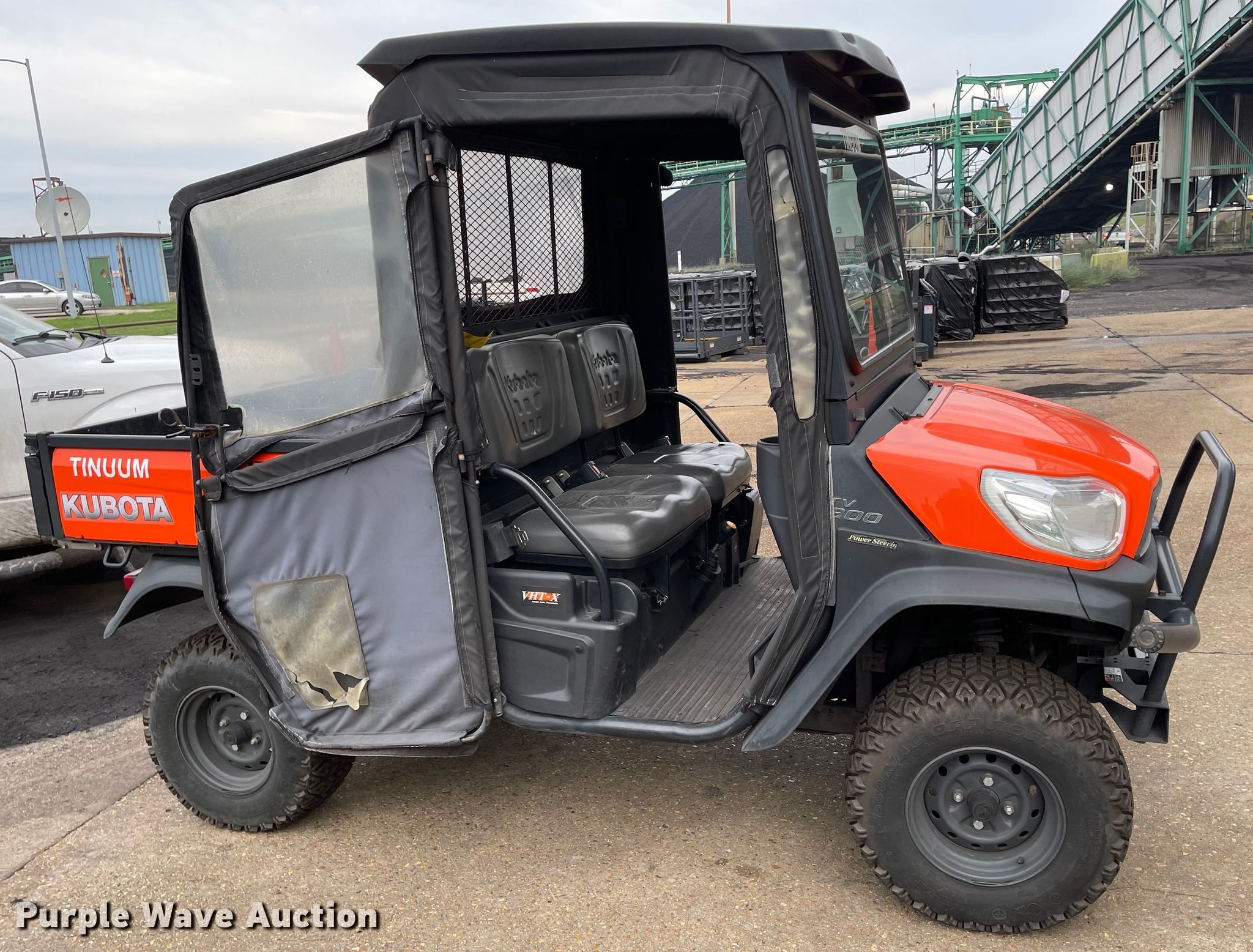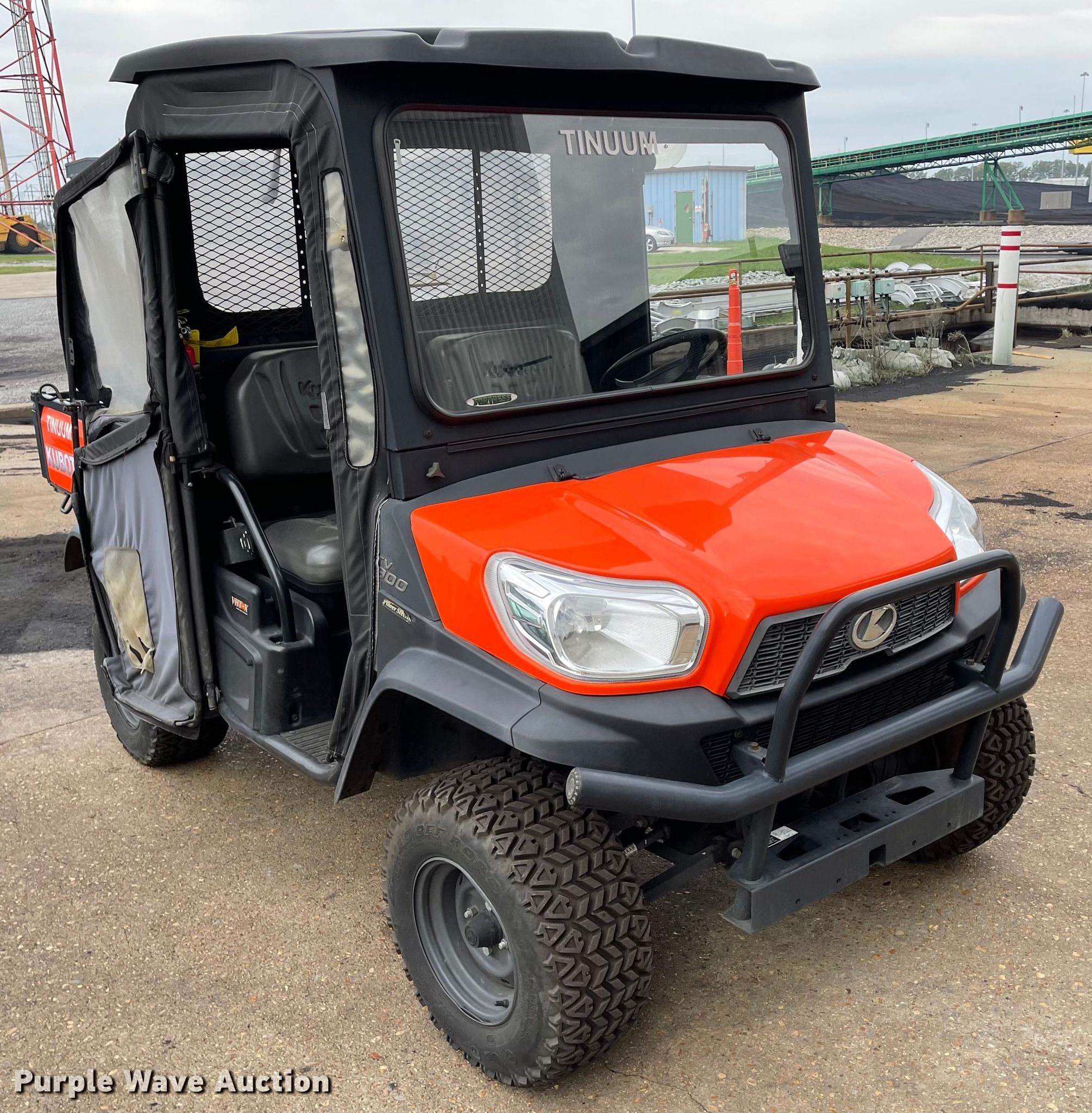 2017 Kubota RTV X900 utility vehicle. Hours: 438 on meter Miles and hours may vary, unit still in use, VIN: A5KB2FDBCHG043515. Engine Kubota D902, Cylinders: 3, Fuel type: Diesel, Electric start. Transmission Automatic. Chassis Four wheel drive. Operators station Enclosed cab, Passengers: 2. Operational Dump bed 40" L x 5" W, Dump bed type: Electric/ Hydraulic. Tires Rear: 25x10.00-12. Transfer of ownership documentation will be a bill of sale. Tinuum Services, LLC. Marston, MO 63866