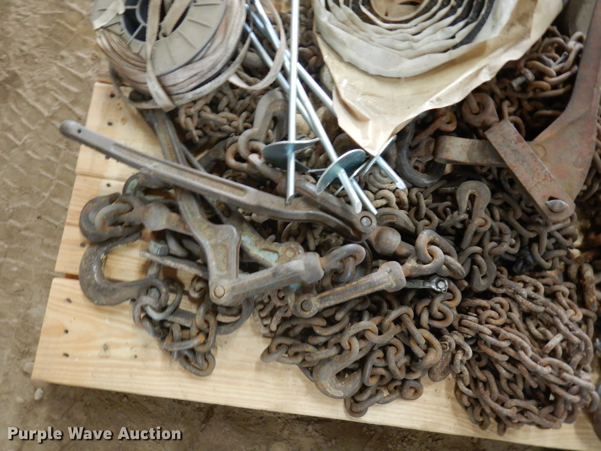 Purple Wave is selling a used Tools in Minnesota. This item is a Tools with the following: Chains, Chain binders, Hooks