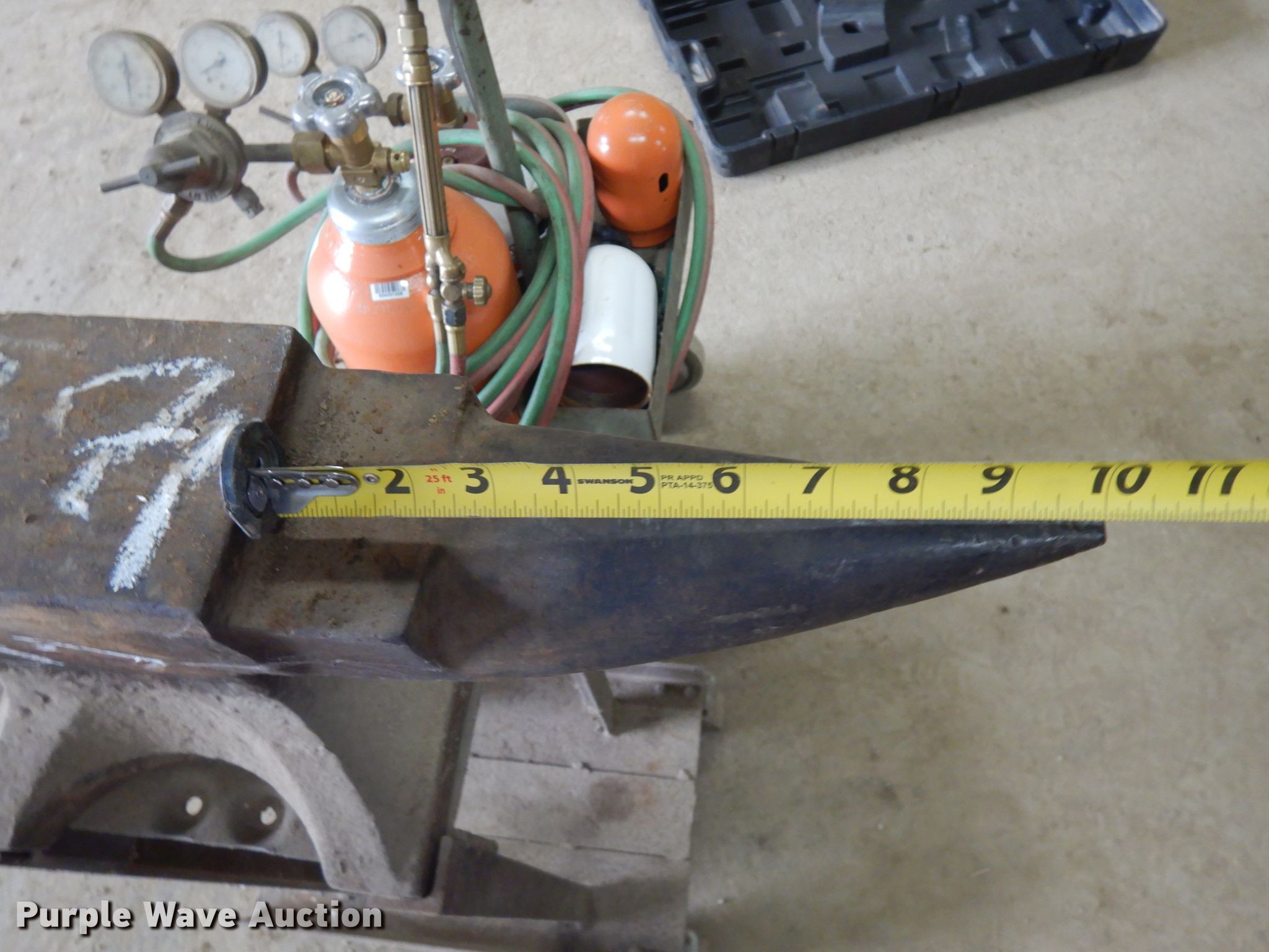 Cutting torch. Bottles included, Anvil. Mike Pehler Excavating Retirement Auction. 23422 Garvin Heights Rd. Winona, MN 55987