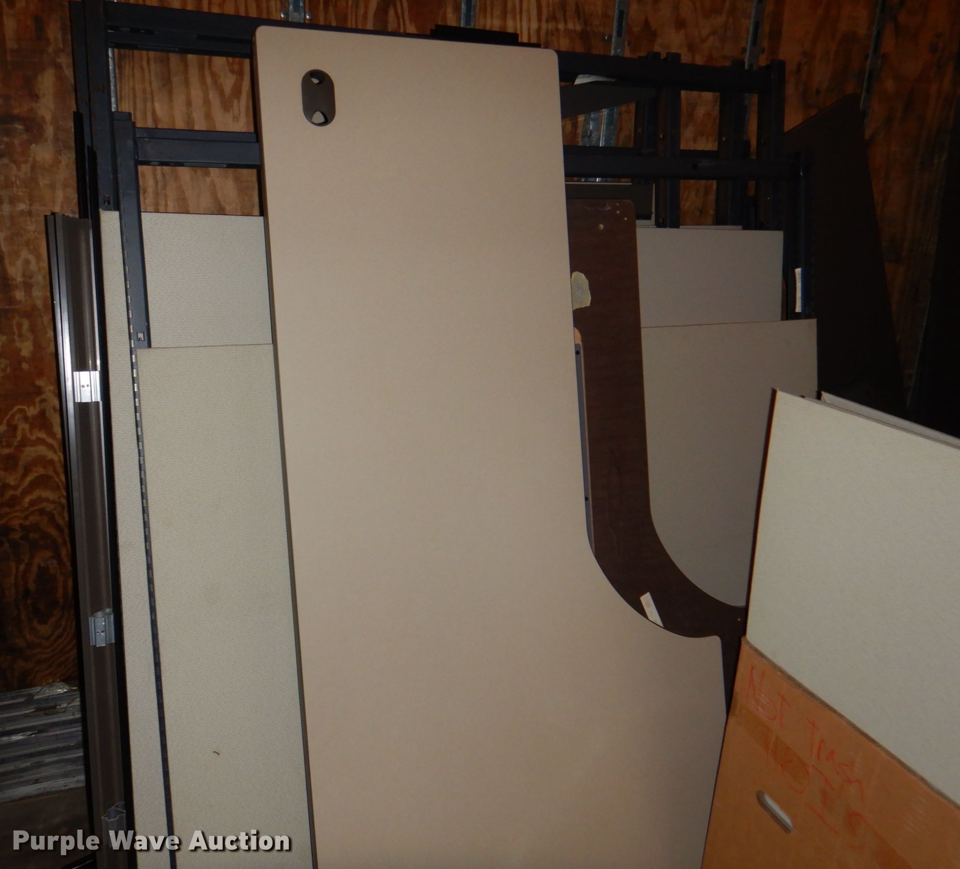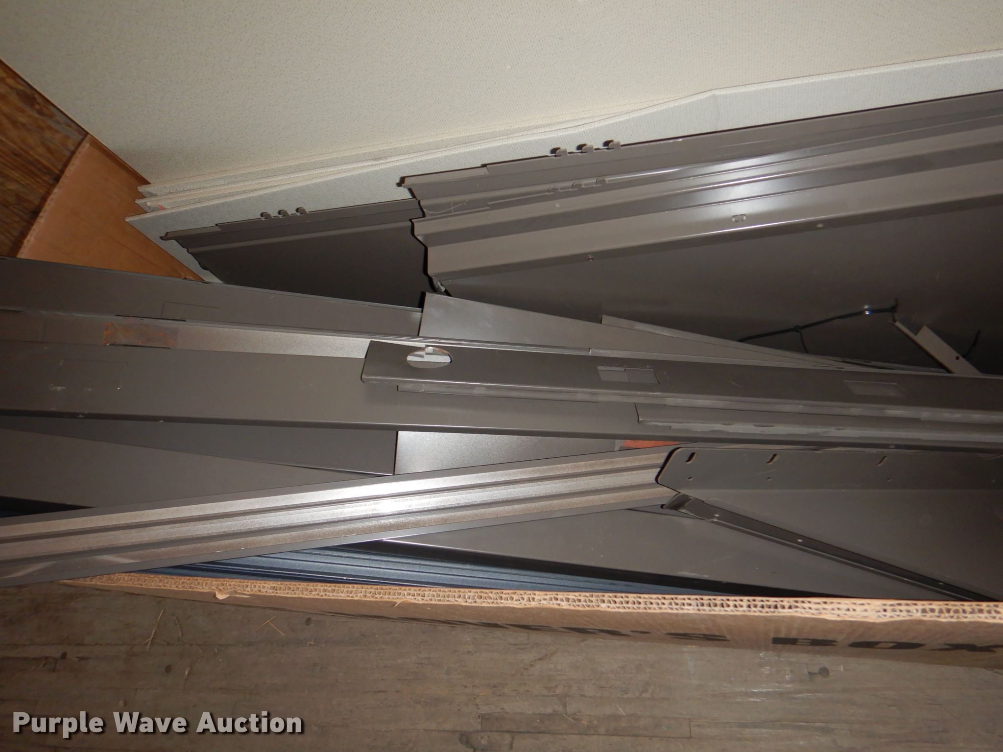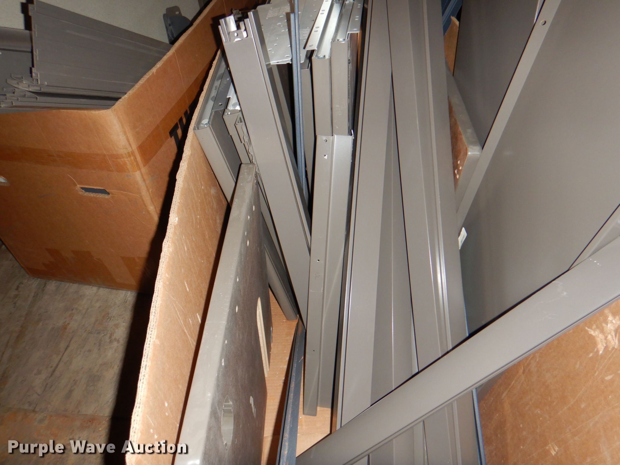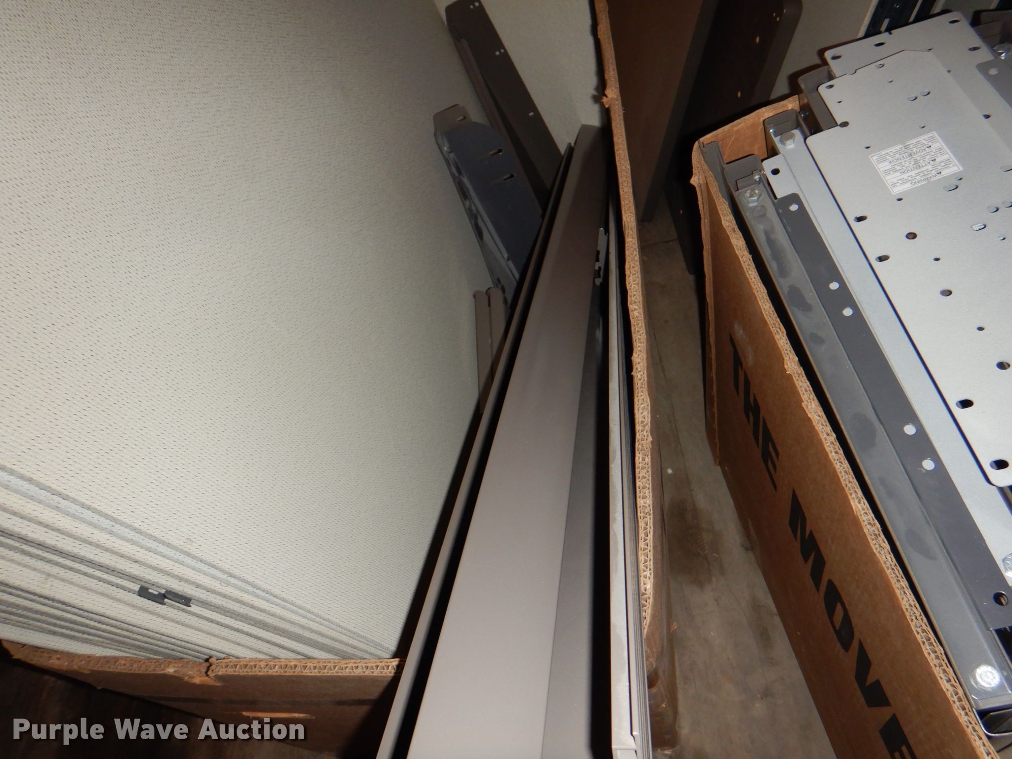 Purple Wave is selling a used Office Supplies and Equip. in Iowa. This item is a Office supplies with the following: (4) filing cabinets, (3) three drawer, 36" W x 39" H, Five drawer, 36" W x 65.5" H,, Approx. 61 bulletin boards, Various sizes, Cubicle frame pieces, Approx. 26 mounting brackets, Approx. 16 desktops, Sizes: 36" to 60", Approx. 12 glass tops