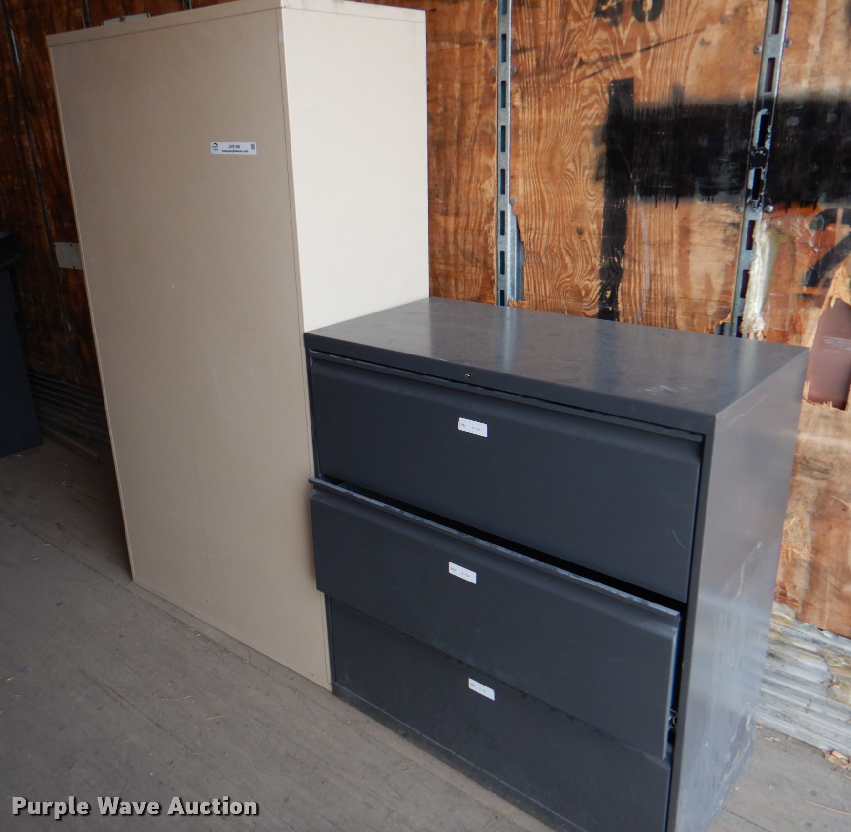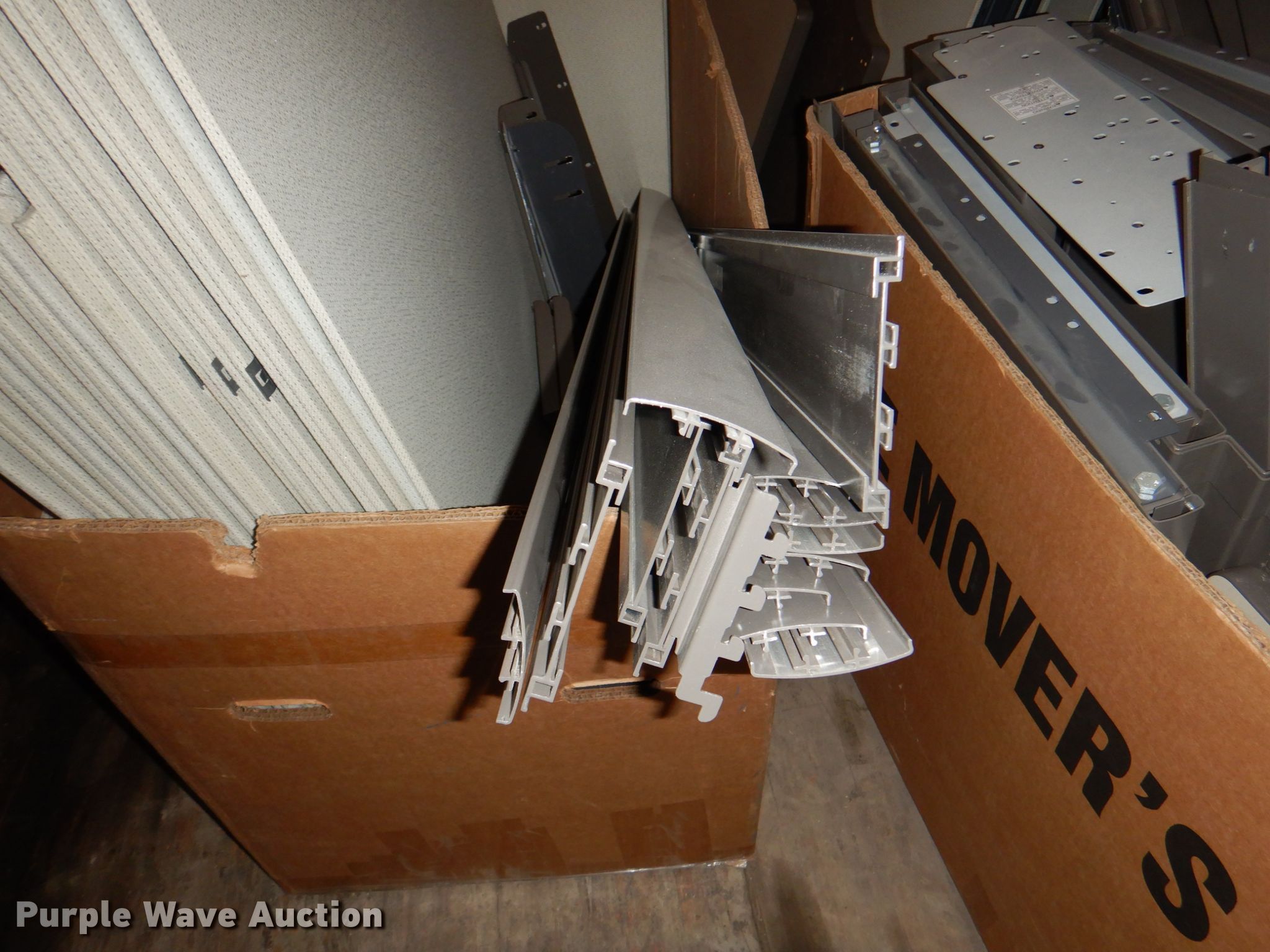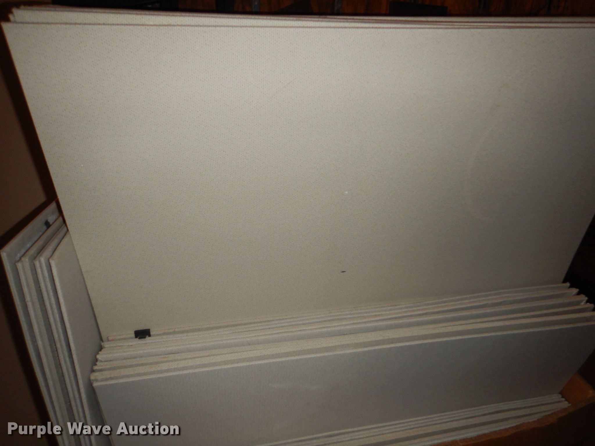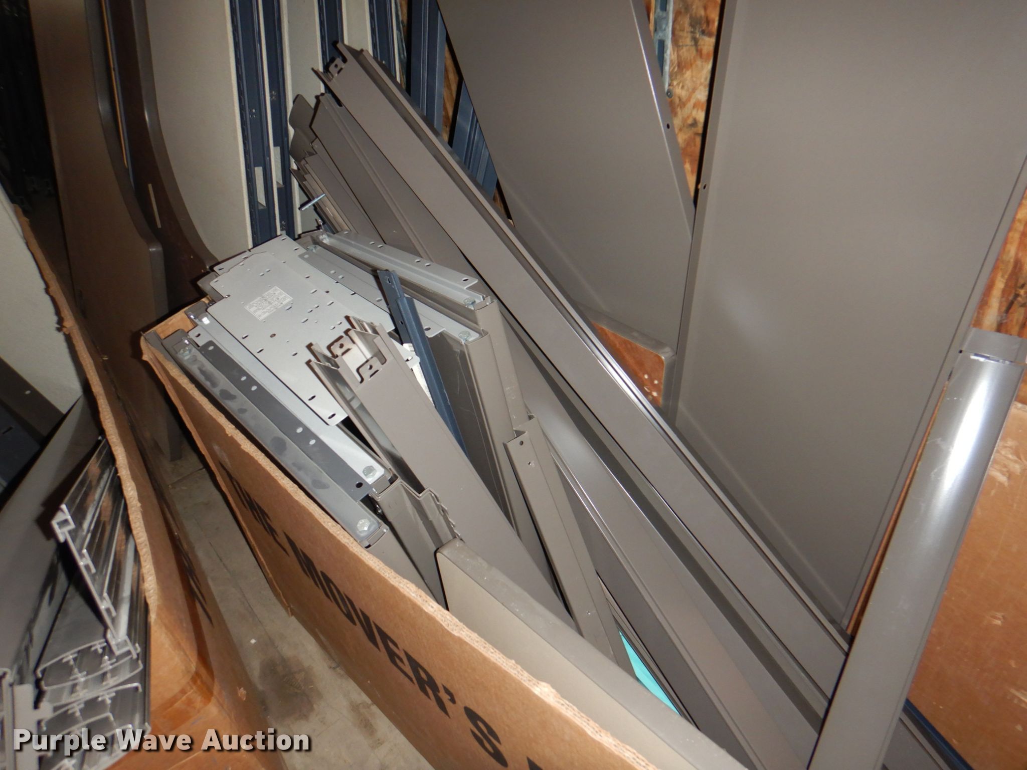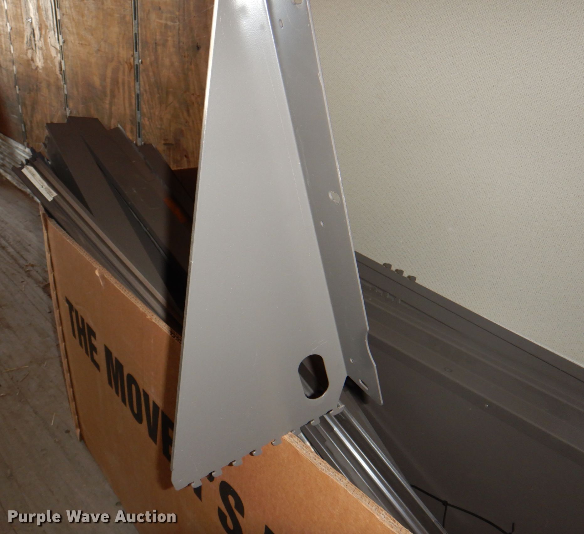 Purple Wave is selling a used Office Supplies and Equip. in Iowa. This item is a Office supplies with the following: (4) filing cabinets, (3) three drawer, 36" W x 39" H, Five drawer, 36" W x 65.5" H,, Approx. 61 bulletin boards, Various sizes, Cubicle frame pieces, Approx. 26 mounting brackets, Approx. 16 desktops, Sizes: 36" to 60", Approx. 12 glass tops