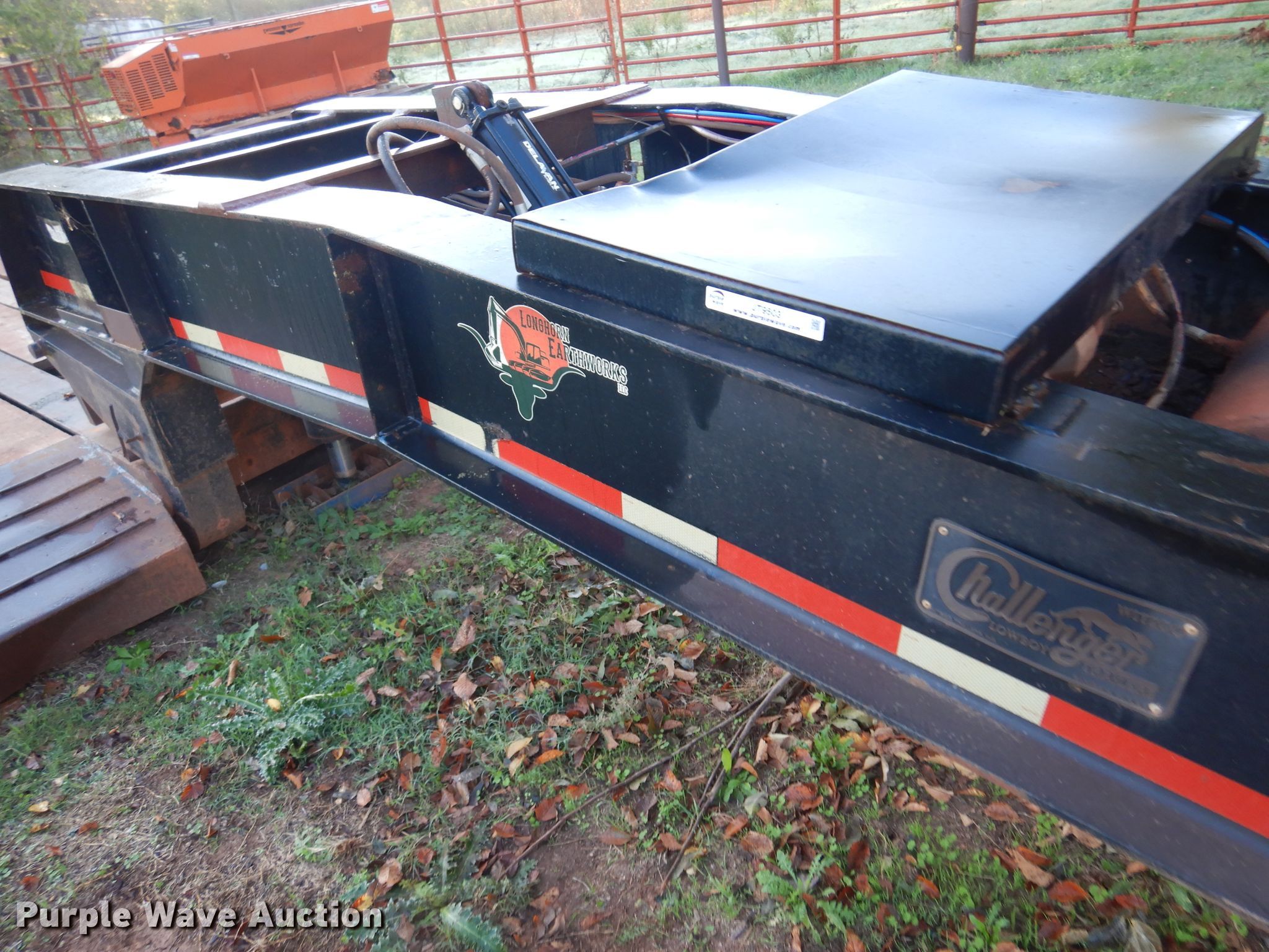 2006 Challenger lowboy equipment trailer. VIN: 1W8A11E286S000088. Dimensions Overall: 43' L x 8' 6" W, Deck: 24' 4" L x 8' 6" W, Rear deck length: 8', Deck height: 42". Operational Deck type: Wood, Outriggers: Swing-out, Neck type: Detachable, Self-contained hydraulics. Chassis Landing gear: Single, Suspension: Spring, Brakes: Air, Axles: Tandem. Tires Steel wheels, Size: 11R22.5. Oklahoma title. Title distribution may be delayed up to 30 days from verification of funds. CMB Farms, LLC. Cashion, OK 73016