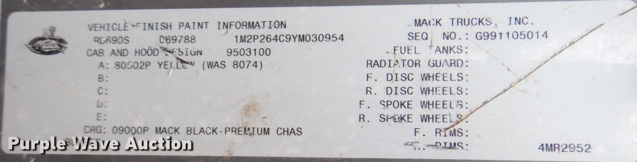 Take a look at this used 2000 Mack R690S ready mix truck being sold on November 18th, 2021 in the SOLD! Thursday November 18 Construction Equipment Auction made by Mack. Take a look at all of the item information below or take a look at similar auctions for Construction Trucks.