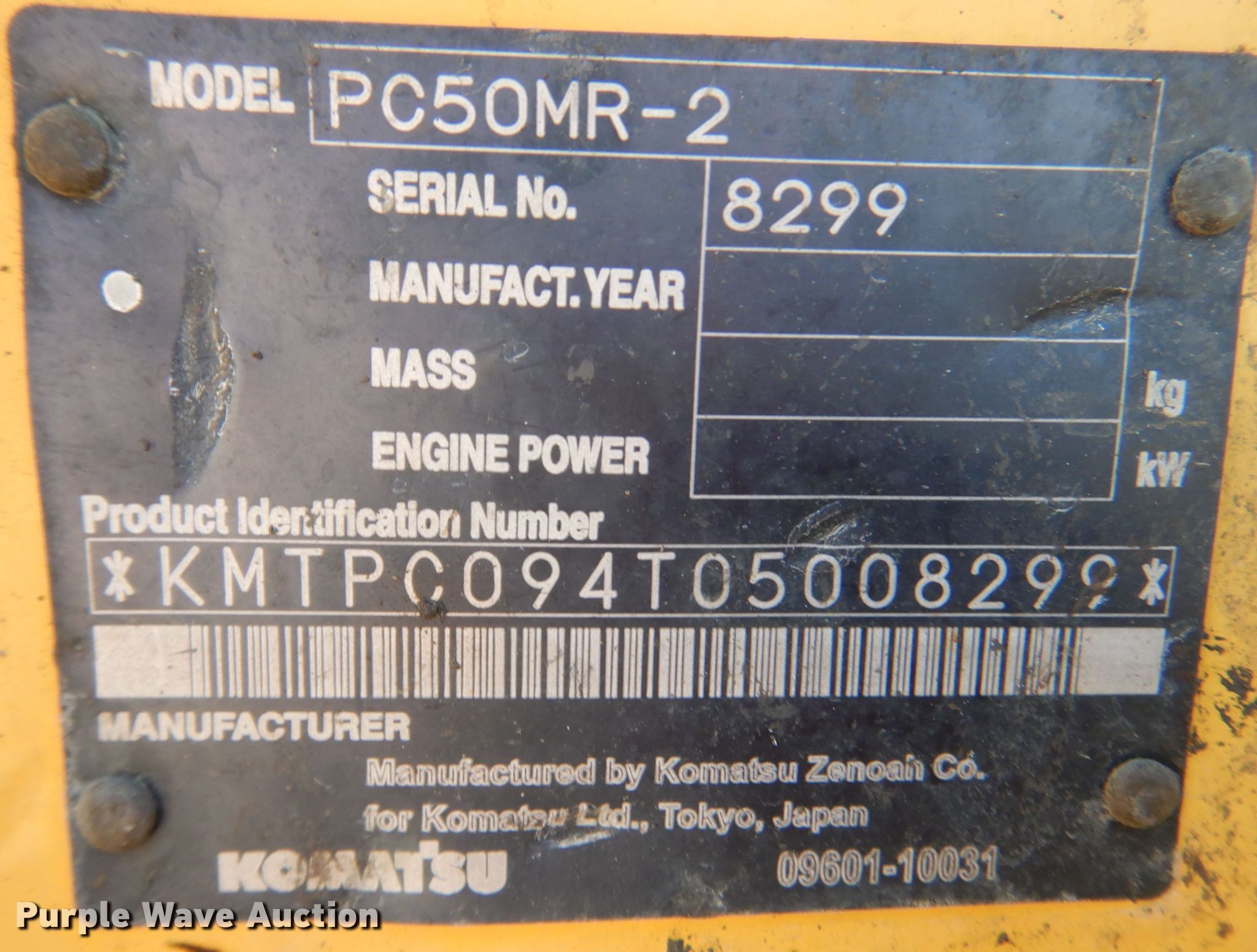 Purple Wave is selling a used Mini Excavator in Texas. This item is a 2007 Komatsu PC50MR-2 mini excavator with the following: Hours: 3,151 on meter, Serial: KMTPC094T05008299