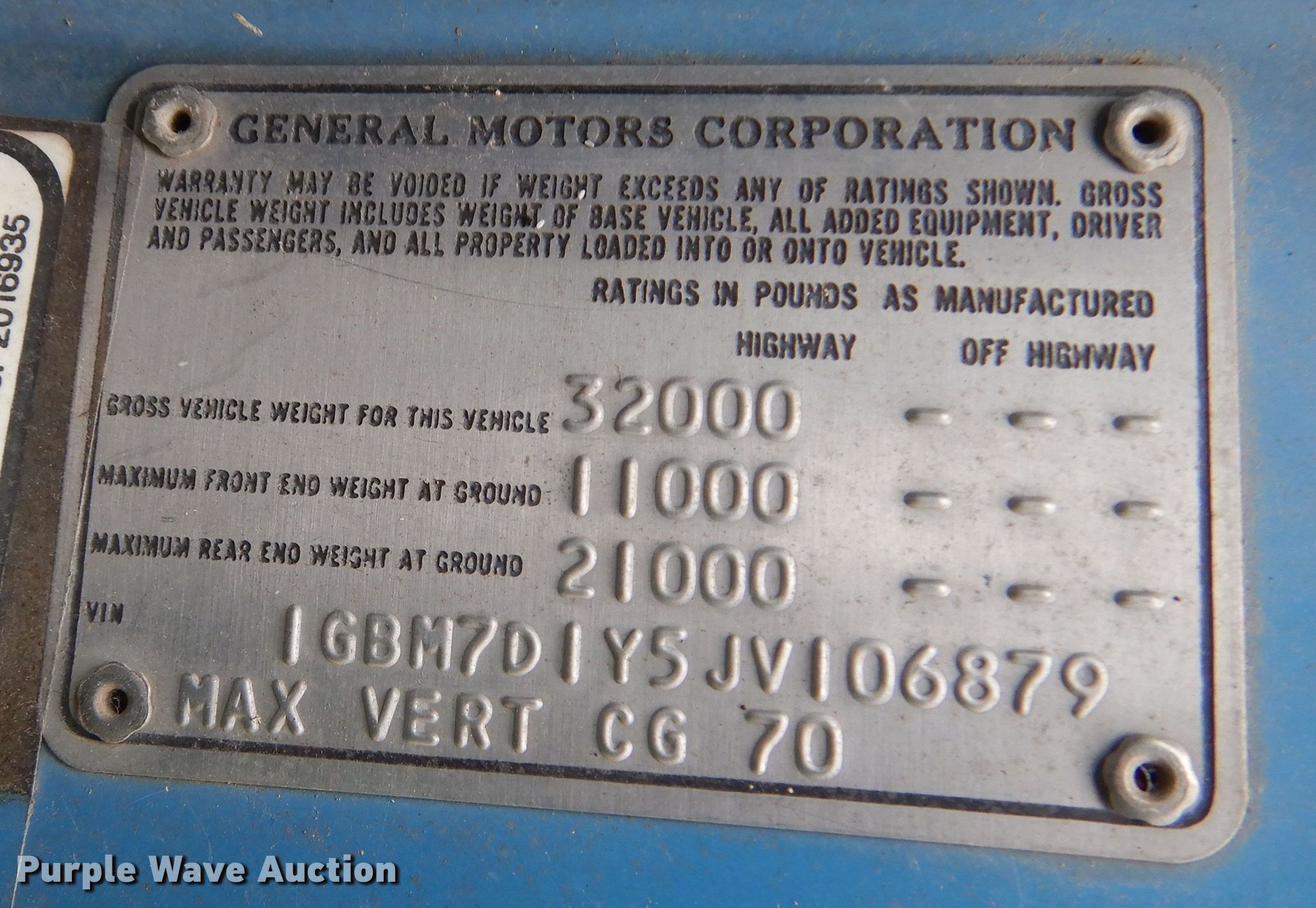 - VIN: 1GBM7D1Y5JV106879