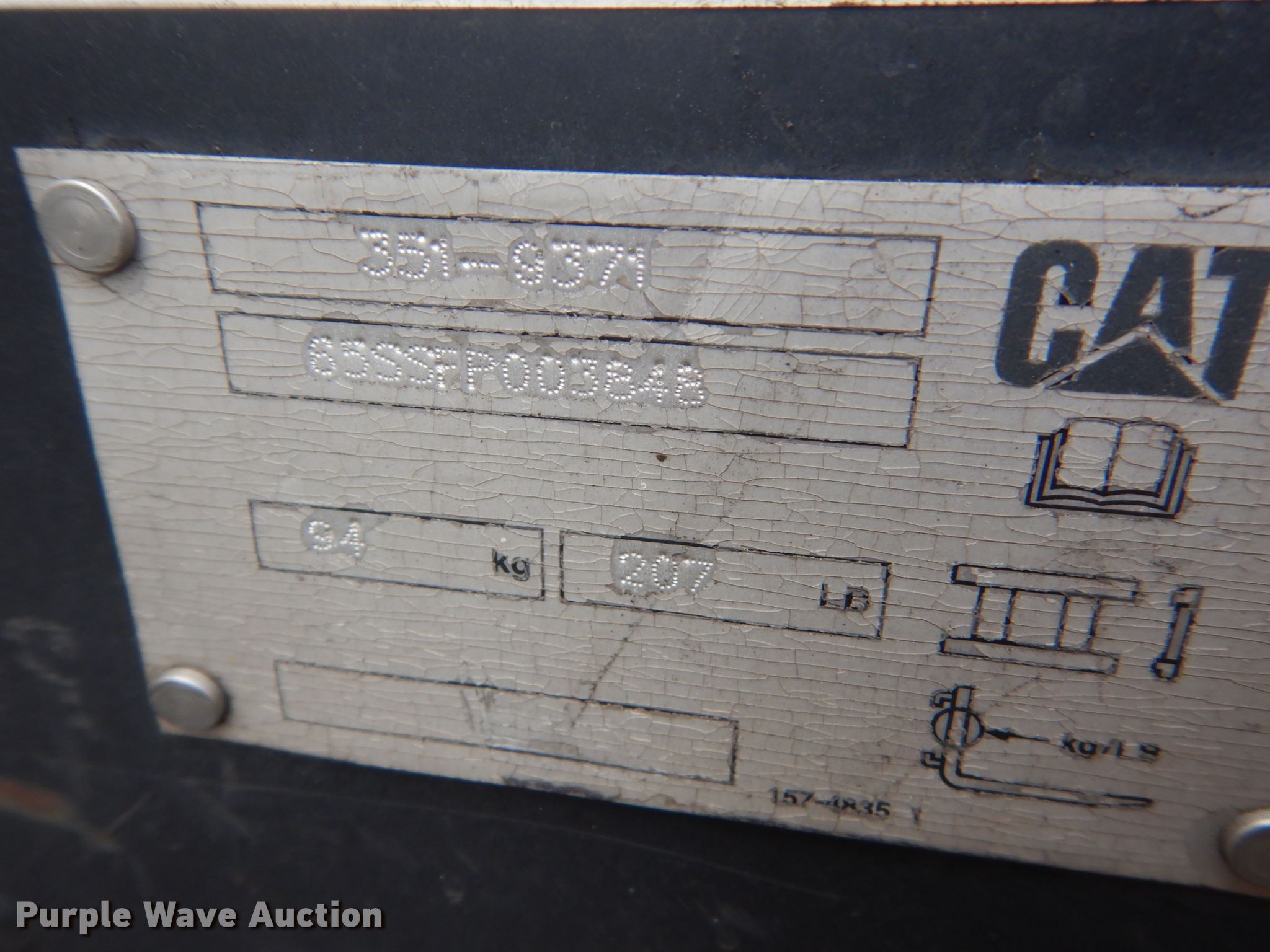 2015 Caterpillar 272D2 skid steer loader. Hours: 1,637 on meter, Hours may vary, unit still in use, Serial: CAT0272DPBL200279. Engine Caterpillar, Cylinders: 4, Fuel type: Diesel, HP: 95. Transmission Hydrostatic, Two speed travel. Operators station Enclosed cab, AC, Bucket control: Hand. Operational Auxiliary hydraulics, Quick coupler: Hydraulic, Bucket Width: 63", Cutting edge: Bolt-on, Forks Caterpillar , Length: 48". Tires Size: 12-16.5, Foam filled. Notes (4) Additional tires and wheels Size: 12-16.5, Foam filled. Tinuum Services. Center, ND 58530