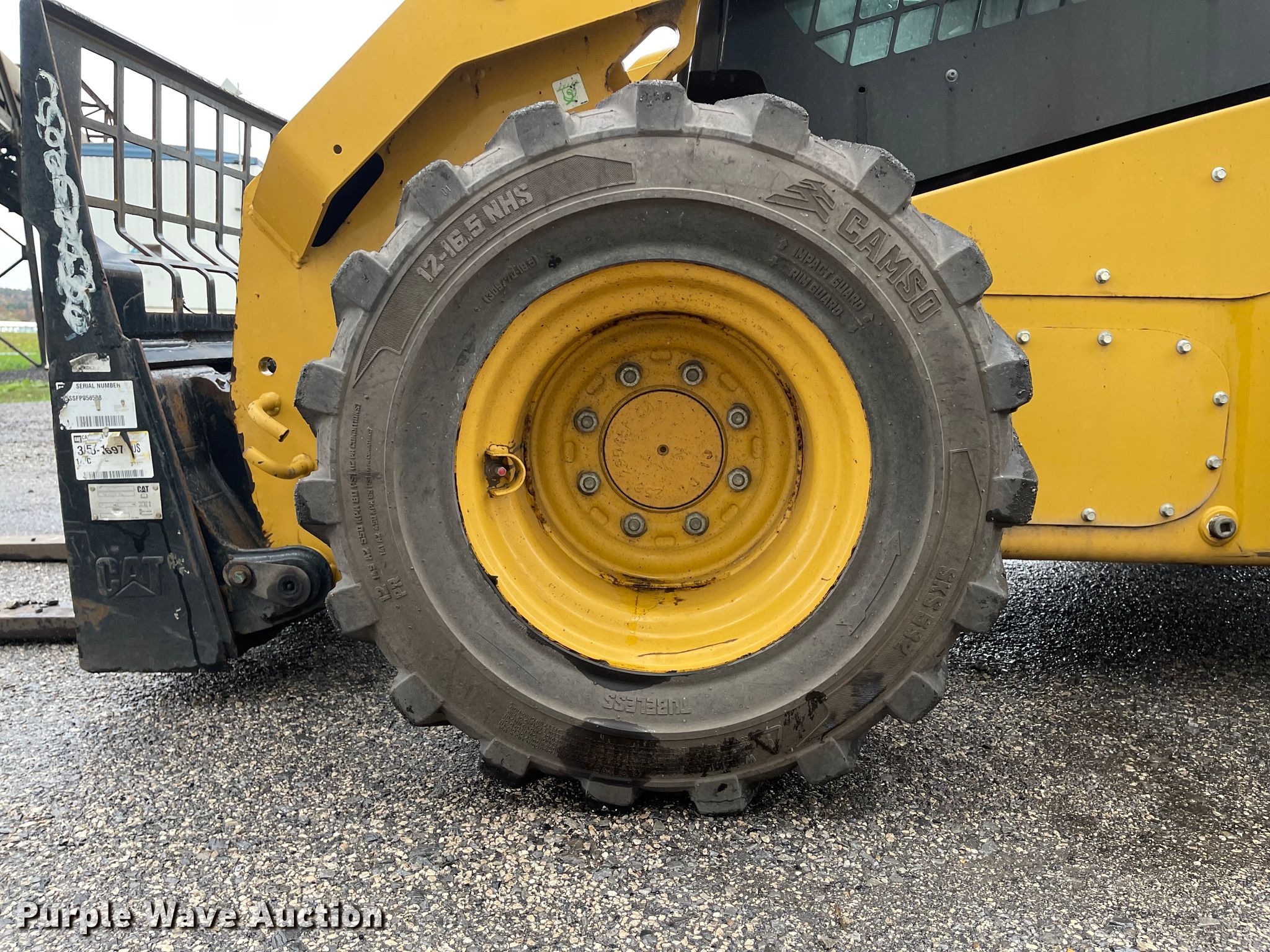 2015 Caterpillar 272D2 skid steer loader. Hours: 912 on meter, Hours may vary, unit still in use, Serial: CAT0272DHBL200261, Unit #: RC44740. Engine Caterpillar, Cylinders: 4, Fuel type: Diesel, HP: 98. Transmission Hydrostatic, Two speed travel. Operators station Enclosed cab, AC, Heat, Bucket control: Hand, Electronic Monitoring System panel. Operational Auxiliary hydraulics, Quick coupler: Hydraulic, Bucket Caterpillar, Capacity: 0.62 cu.yd., Width: 79", Cutting edge: Bolt-on, Forks Caterpillar 48". Tires Size: 305/70-16.5, Foam filled. Tinuum Services, LLC. Shelocta, PA 15774