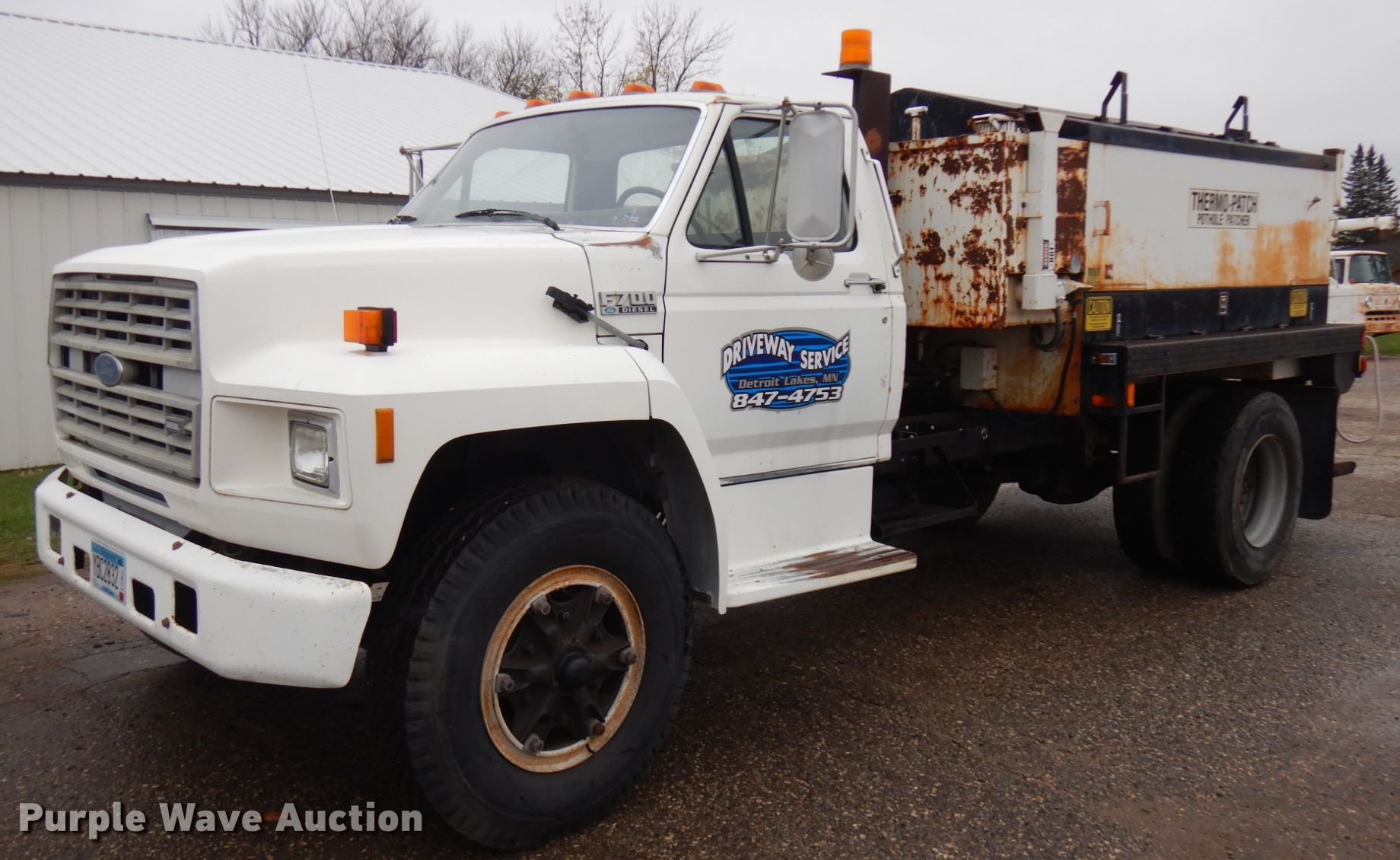 Purple Wave is selling a used Oil Distributor Truck in Minnesota. This item is a 1991 Ford F700 pot hole patcher truck with the following: Miles: 33,689 on odometer, VIN: 1FDPK74P9MVA18008