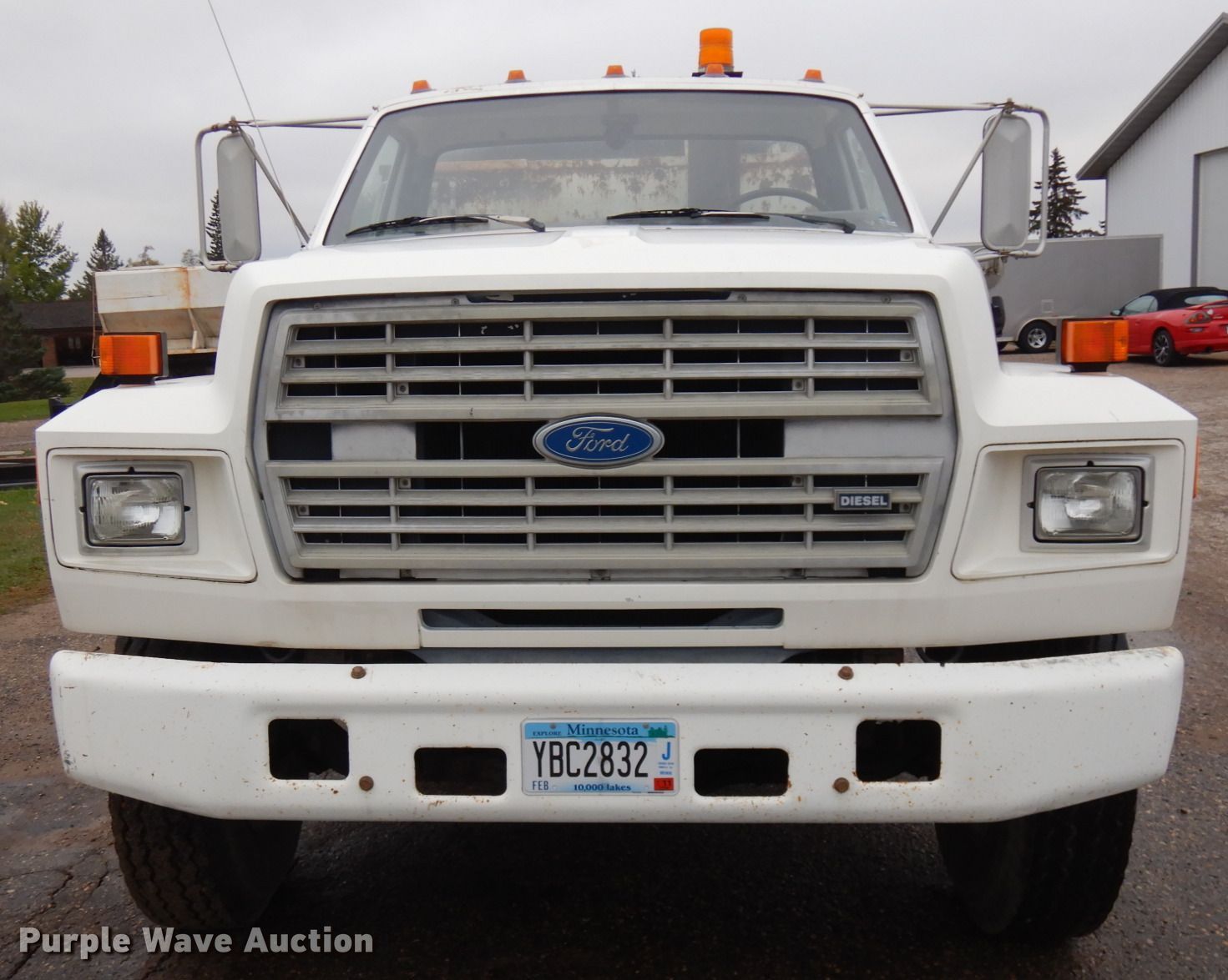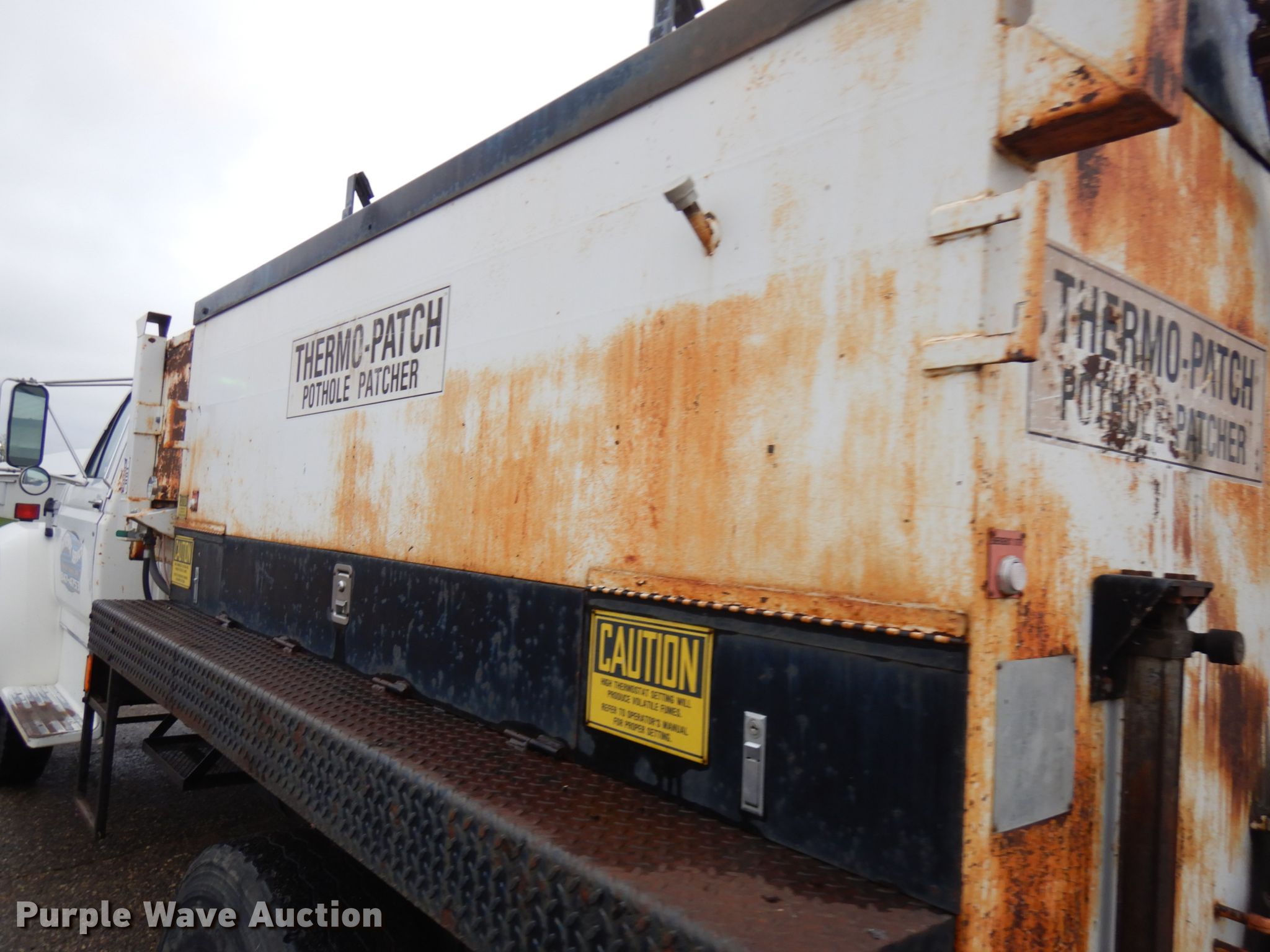 1991 Ford F700 pot hole patcher truck. Miles: 33,689 on odometer, VIN: 1FDPK74P9MVA18008. Engine Displacement: 6.6L, Cylinders: 6, Fuel type: Diesel. Transmission Manual, Speed: 5. Chassis Axles: Single, Suspension: Spring. Interior AC, Heat. Operational Pot hole patcher RGS Industries, Model: TM420200SP, Serial: J0334, 9'L x 76"W x 5'H, Propane burner. Tires Front: 10.00-20, Rear: 11R22.5. Minnesota title. Seller is a Minnesota licensed motor vehicle dealer. The buyer may be required to pay sales tax and/or registration fees to the dealer prior to taking possession. Title will be assigned and distributed by the dealer. Please contact the seller for distribution questions. Road Machinery & Supplies Co. 25159 County Rd 6. Detroit Lakes, MN 56501
