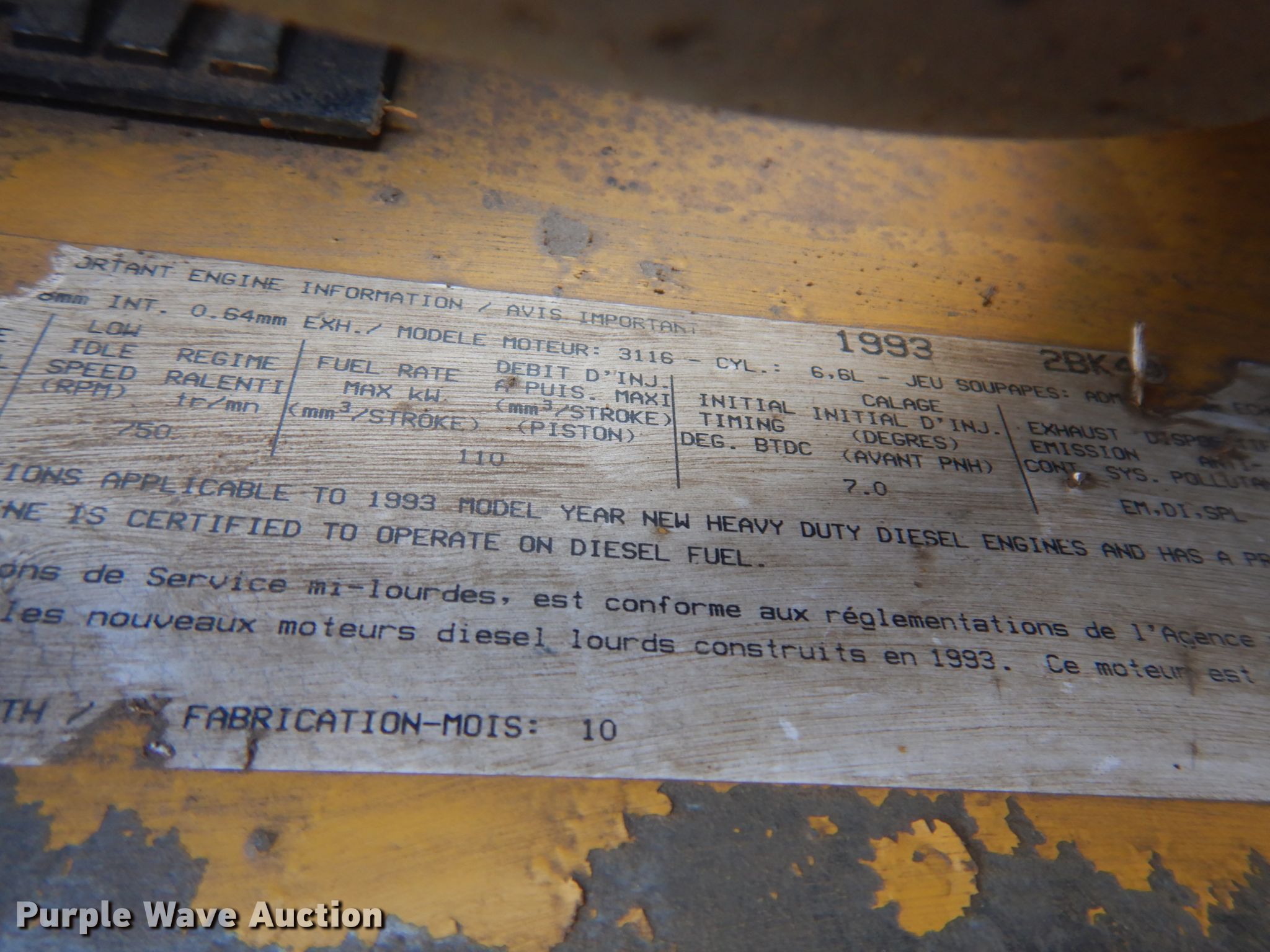 1994 Chevrolet Kodiak truck cab and chassis. Miles: 296,044 on odometer, VIN: 1GBM7H1J0RJ103286. Engine Caterpillar 3116, Displacement: 6.6L, Cylinders: 6, Fuel type: Diesel, Engine brake. Transmission Eaton fuller, Manual, Speed: 10. Chassis Axles: Single, Suspension: Spring, Brakes: Air, Truck chassis: 14' 6". Interior AC, Heat. Operational Fuel tank: Dual. Tires Size: 11R22.5. Notes Non-operational engine, hole in engine block, Non-operational unit. South Dakota title. Gustafson Builders. 4101 Deadwood Ave N. Rapid City, SD 57702