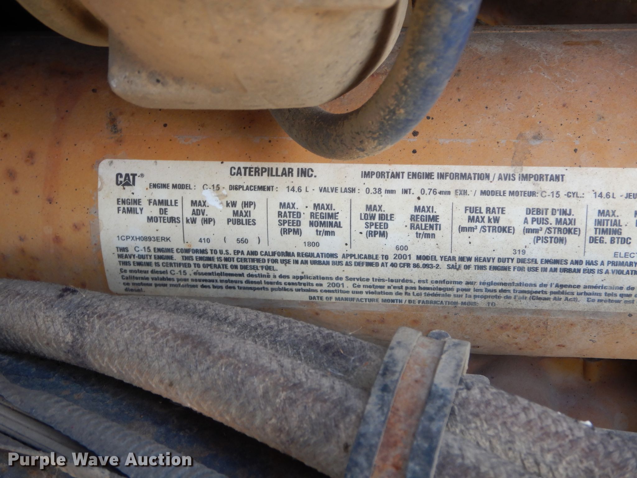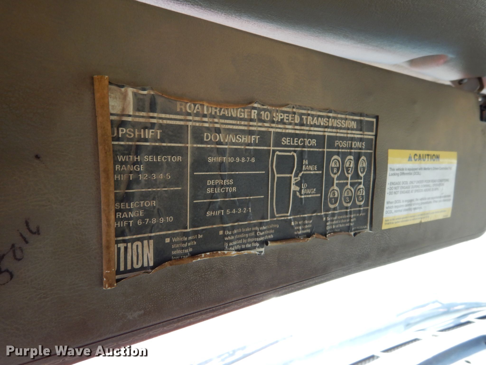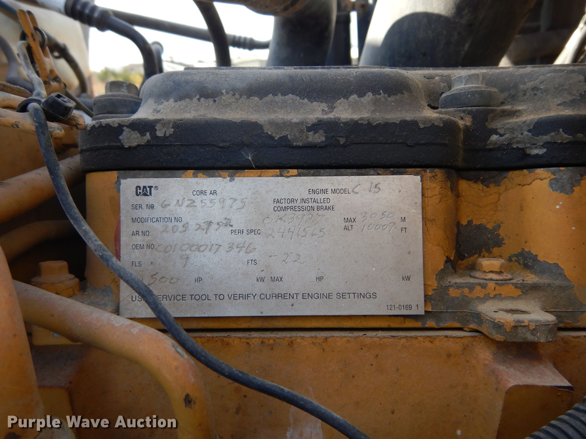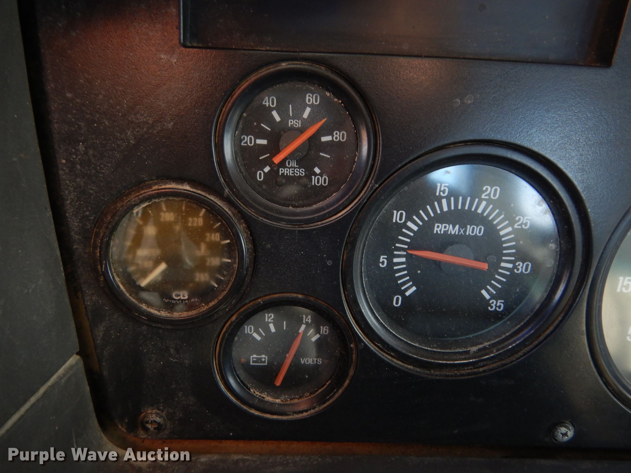 2002 Sterling LT9500 semi truck. Miles: 83,705 on odometer, VIN: 2FWJA3AV12AJ51790, Unit #: 3803. Engine Caterpillar C-15, Displacement: 14.6L, Cylinders: 6, Fuel type: Diesel, Engine brake. Transmission Road Ranger, Speed: 10. Chassis Axles: Tandem, Differential lock: Inter-axle, Suspension: Air, Brakes: Air, PTO, Truck chassis: 13' 2", GVWR: 52,000 lbs FAWR: 12,000 lbs, IAWR: 20,000 lbs, RAWR: 20,000 lbs. Interior AC, Heat, Cruise control. Operational Deck plate: Aluminum, Fifth wheel type: Air operated, Sliding. Tires Size: 11R22.5. South Dakota title. Consolidated Ready Mix Inc.. 1011 330th St. Bellingham, MN 56212
