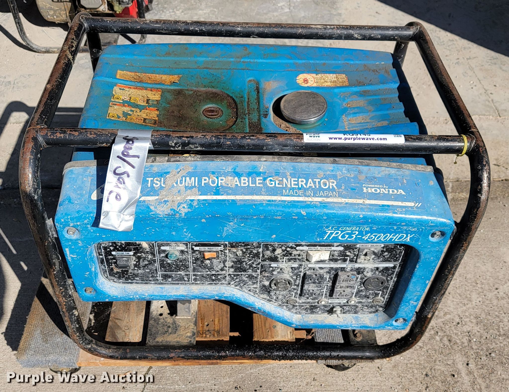 Purple Wave is selling a used Generator Set in Missouri. This item is a Tsurumi TPG3-4500HDX generator with the following: Honda GX240 single cylinder gas engine, 4,500 Watts