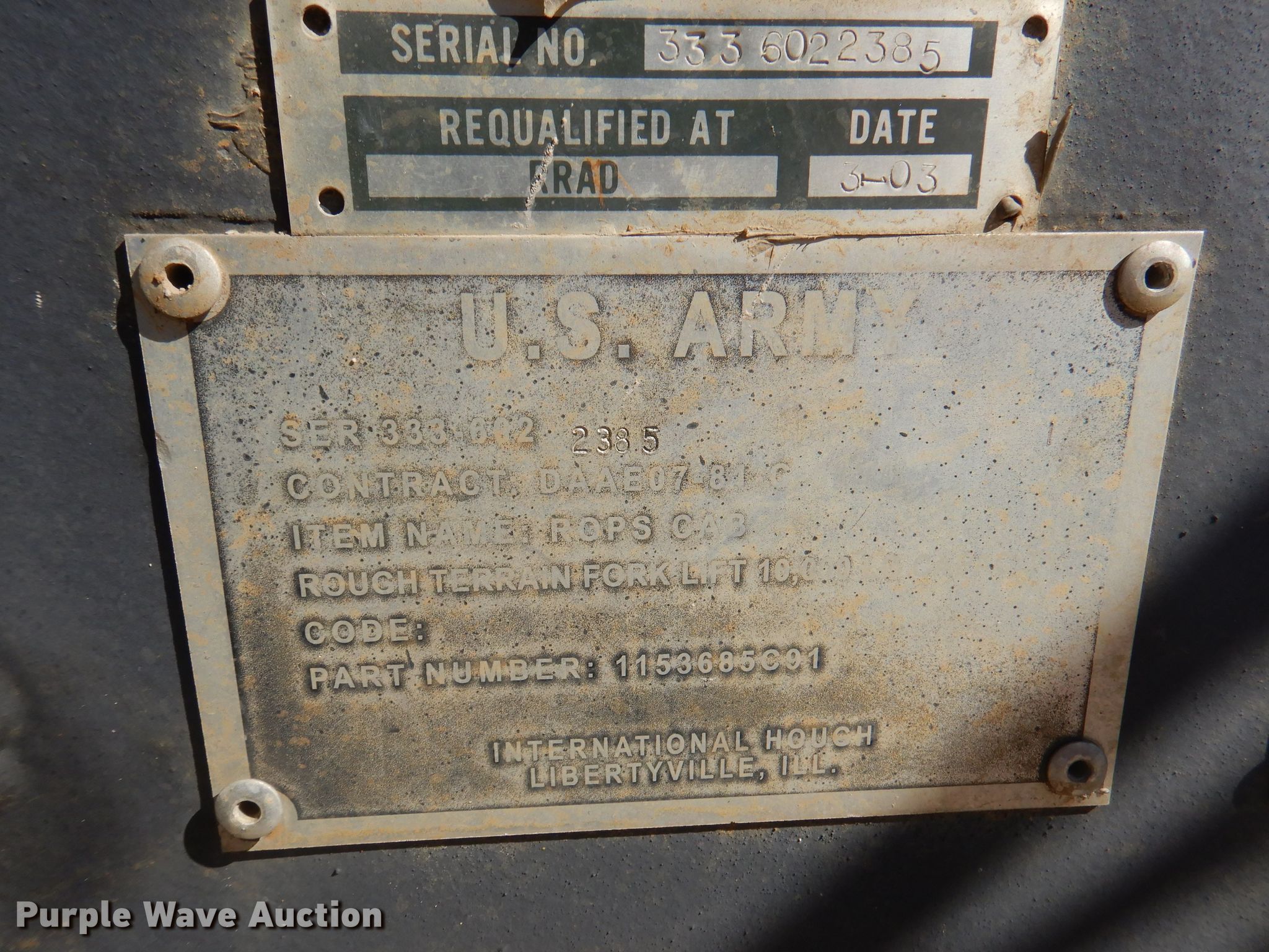 International M10A wheel loader. Hours: 551 on meter, Serial: 3336022385. Engine Cylinders: 6, Fuel type: Diesel. Transmission Powershift. Operators station Enclosed cab, Bucket controls: Two-lever. Operational Quick coupler: Manual, Counter weights, Forks Length: 72". Tires Size: 20.5-25. Washington County. 2615 S Brink Dr. Fayetteville, AR 72701