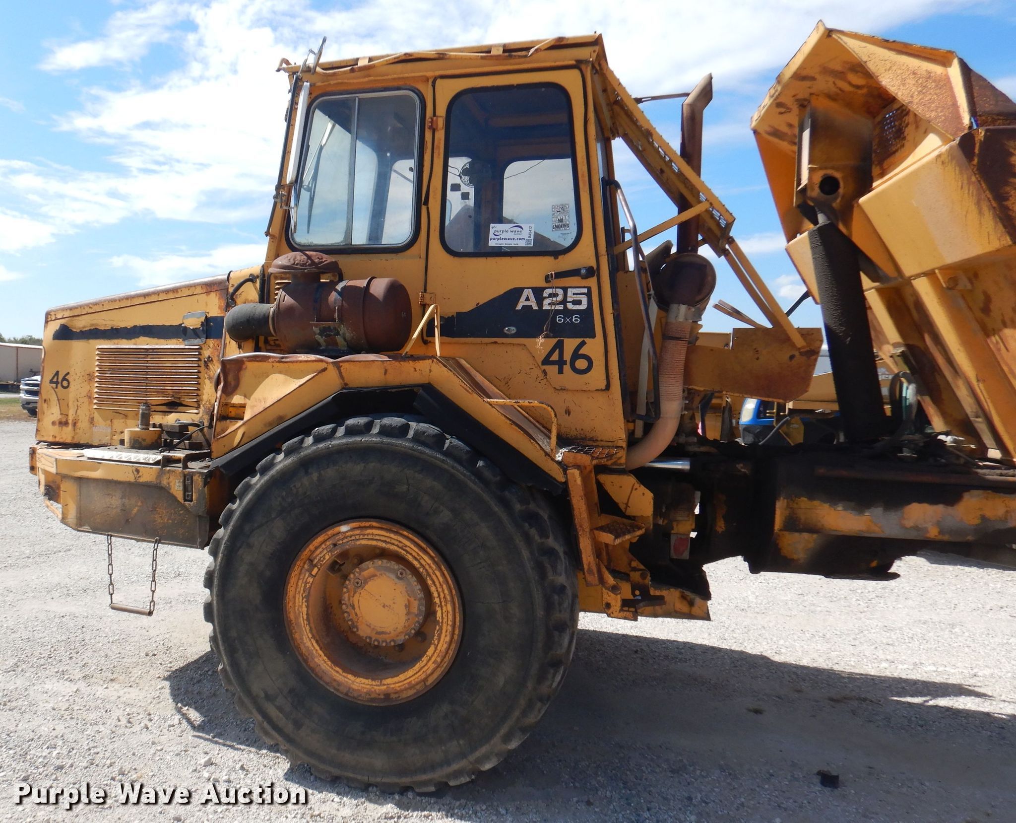 Volvo A25 haul truck. Hours: 24,744 on meter. Engine Cylinders: 6, Fuel type: Diesel. Transmission Automatic. Chassis Six wheel drive. Tires Front: 23.5R25, Rear: 25.5R25. Notes Bed will not lower, cable missing. Washington County. 2615 S Brink Dr. Fayetteville, AR 72701