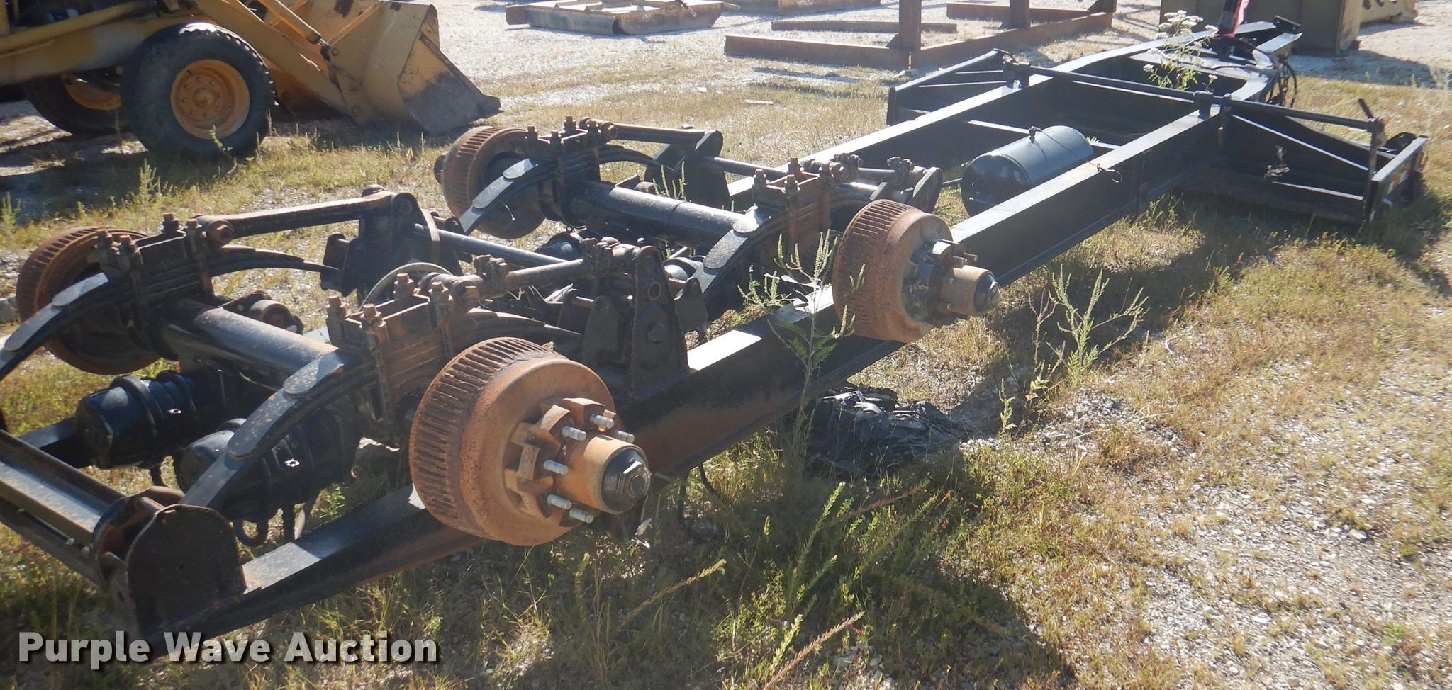 2012 Towmaster trailer chassis. VIN: 4KNTT2427CL161287. Dimensions Overall: 25' 8" L x 8' 6" W, Deck: 20' L. Operational Deck type: Wood. Chassis Hitch: Pintle, Landing gear: Single, Suspension: Spring, Brakes: Air, Axles: Tandem. Notes Wreck damage, Frame bent, Parts missing, Non-operational unit. Arkansas title. Washington County. 2615 S Brink Dr. Fayetteville, AR 72701