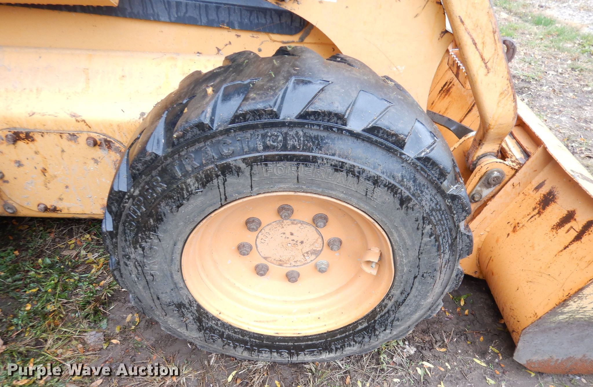 1997 Case 90XT skid steer loader. Hours: 3,170 on meter, Serial: JAF0246058. Engine Cylinders: 4, Fuel type: Diesel. Transmission Hydrostatic. Operators station Enclosed cab, Bucket control: Hand. Operational Auxiliary hydraulics, Quick coupler: Manual, Bucket Width: 73", Cutting edge: Bolt-on. Tires Size: 12-16.5, Brand: Forerunner. Lenexa, KS 66227