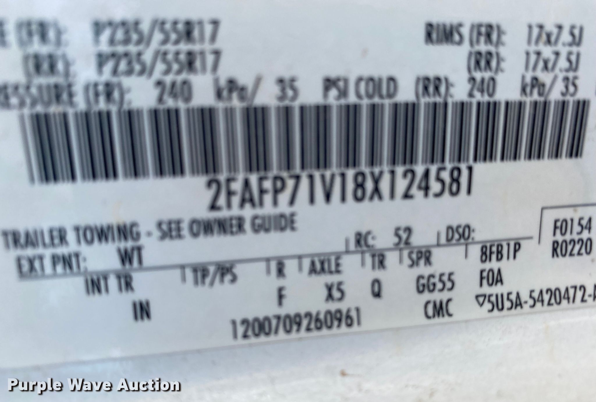Purple Wave is selling a used Passenger Vehicle in Oklahoma. This item is a 2008 Ford Crown Victoria Police Interceptor with the following: Miles: 73,356 on odometer, Hours: 5,265 on meter, VIN: 2FAFP71V18X124581, Unit #: 543