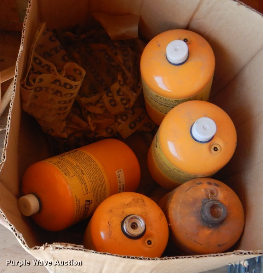 Purple Wave is selling a used Tools in Oklahoma. This item is a Tools with the following: (2) water jug racks, Airless paint sprayer, (10) oil filters, Volvo air filters, (6) John Deere belts, Belts, (5) Dieselmatic engine priming fuel bottles
